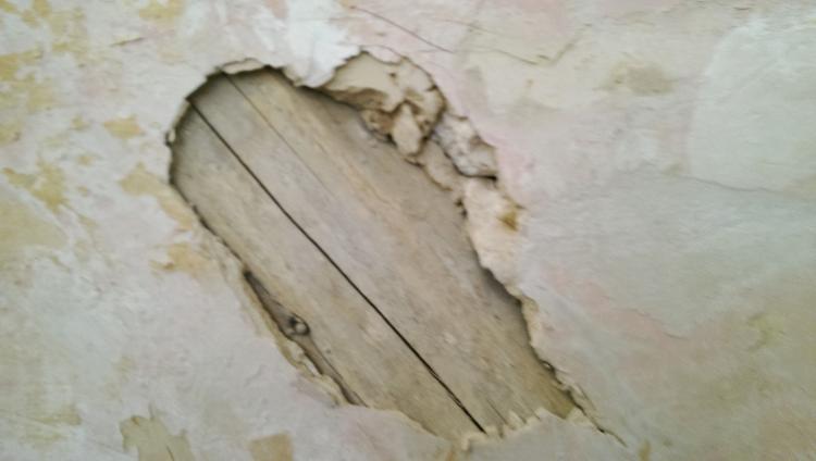 Unebene Zwischenwand mit abgelößten Putz