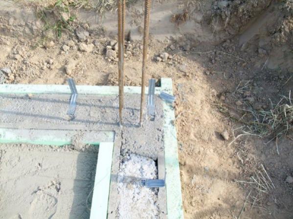 das wird mal eine Betonstütze in der Hausecke, jetzt ist es Dämmung mit Baustahl bevor die Bodenplatte betoniert wird