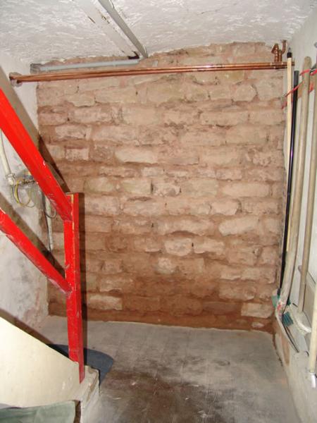 Kellerwand leicht feucht. Altputz abgeschlagen.