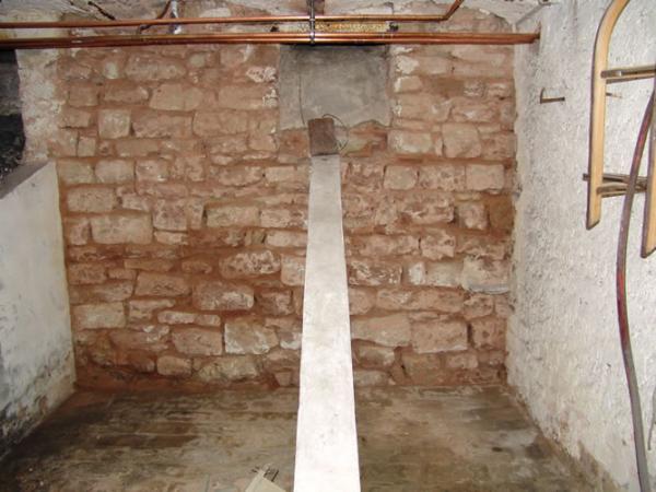 Kellerwand leicht feucht. Altputz abgeschlagen.
