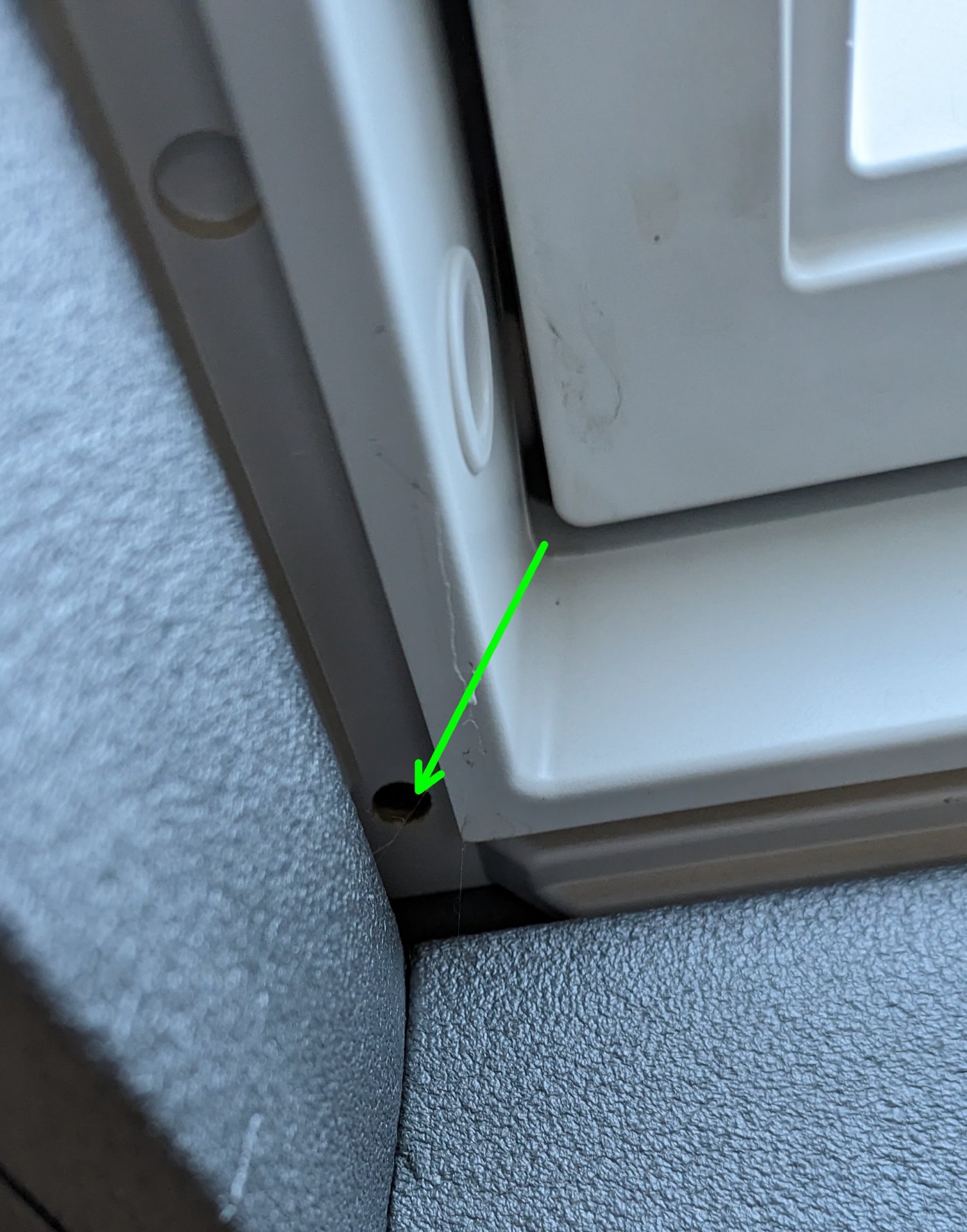 2 Löcher bei Velux-Dachfenster im Rahmen unten/innen