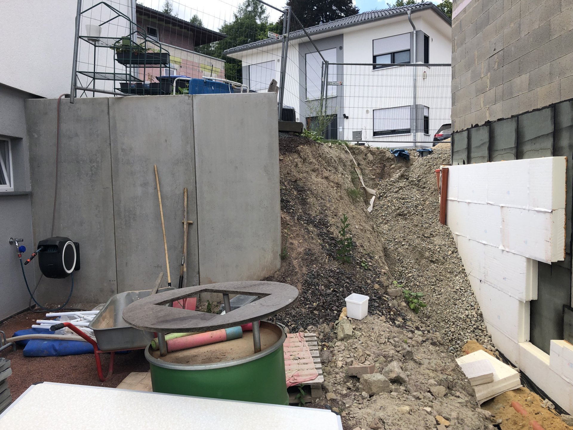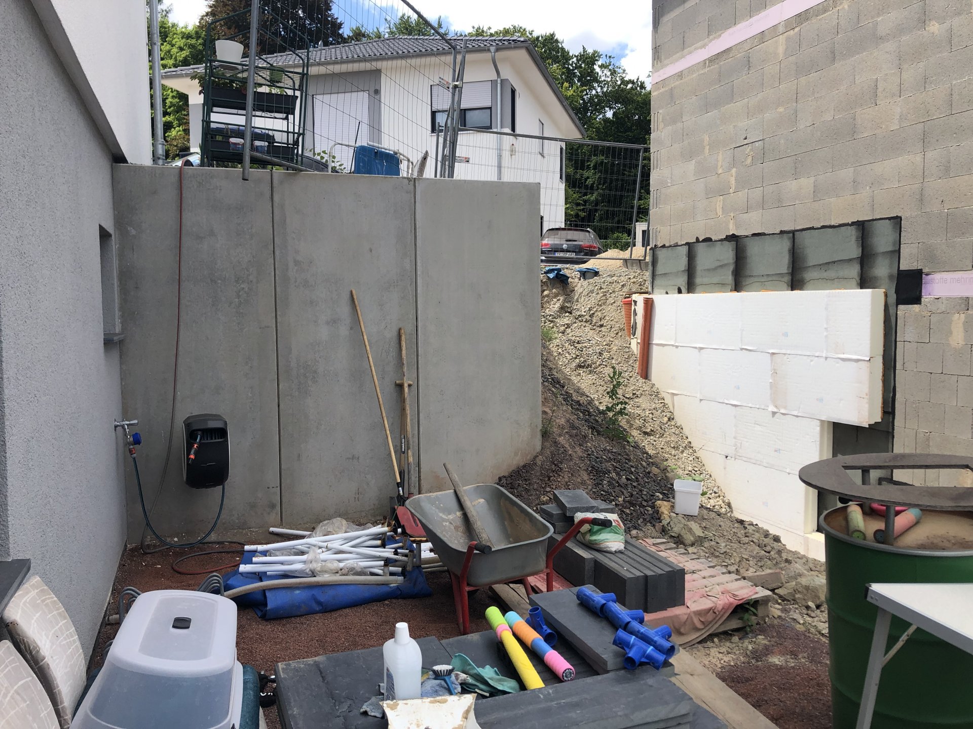 meine L-Steine stehen schon und die Lücke wird nächste Woche entstehen, wenn die Steine vom Nachbarn gesetzt werden. Von daher suchen wir jetzt nach Lösungen wie wir das dann machen. Der Nachbar schliesst die Steine an seinem Haus an und kommt exakt zur Grenze (3m von Haus zur Grenze).