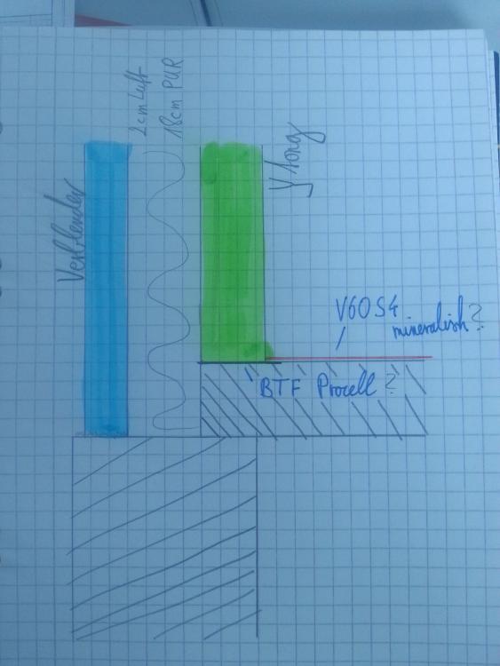 Bodenplatte Abdichtung: Hallo zusammen, habe ein Haus gekauft, Fertighaus BJ2022. Auf Bodenplatte. Warum auch immer ist er etwas „versenkt“ und die Putzunterkante ist... -