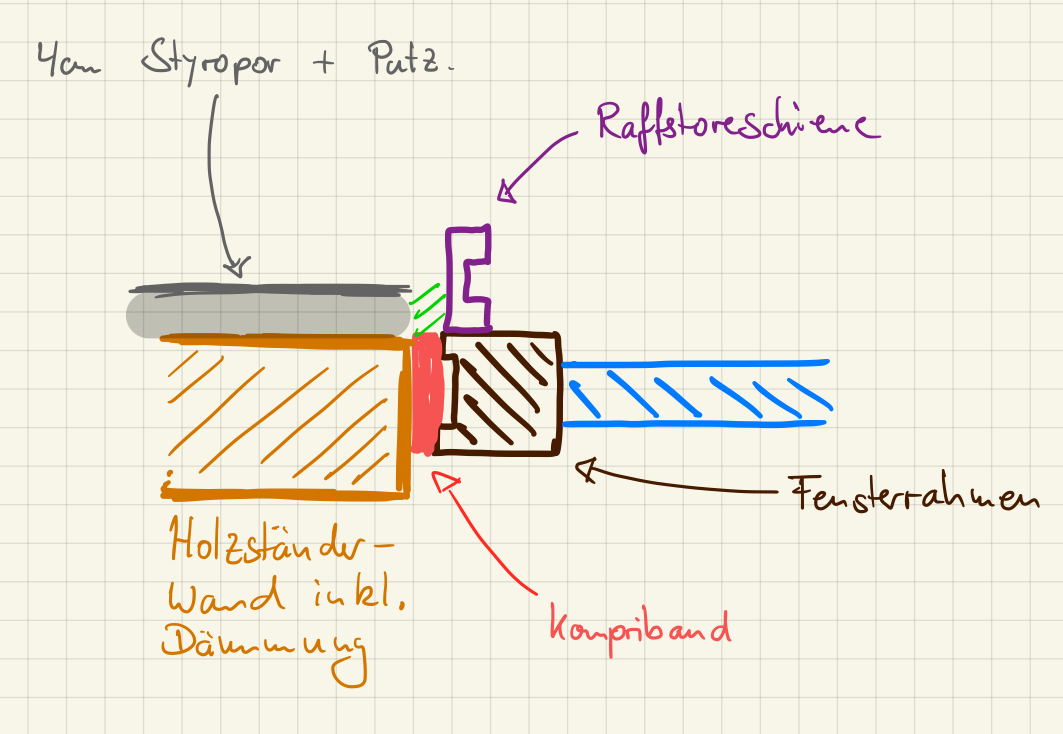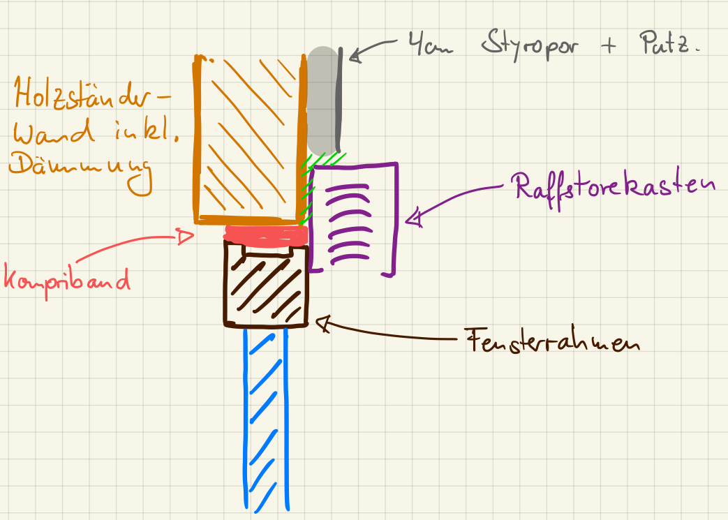 Diskutiere Abdichtung Fenster/Raffstorekasten und -schiene außen im Sanierung konkret Forum im Bereich Altbau; Hallo, wir haben bei unserer Sanierung neue Fenster einbauen lassen. Beim Anschluss außen habe ich nun Fragen zur Abdichtung. Das Haus ist aus...