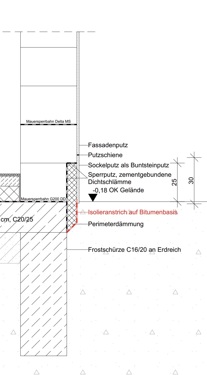 5. Abdichtung Sockelbereich Einschaliges Mauerwerk mit Klinkerriemchen