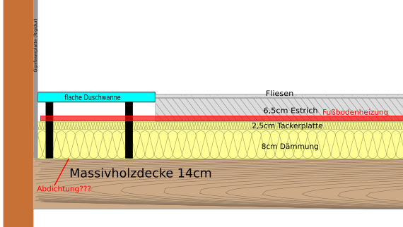 Thema: Abdichtung unter flachen Duschwanne in Holzständerhaus mit FBH