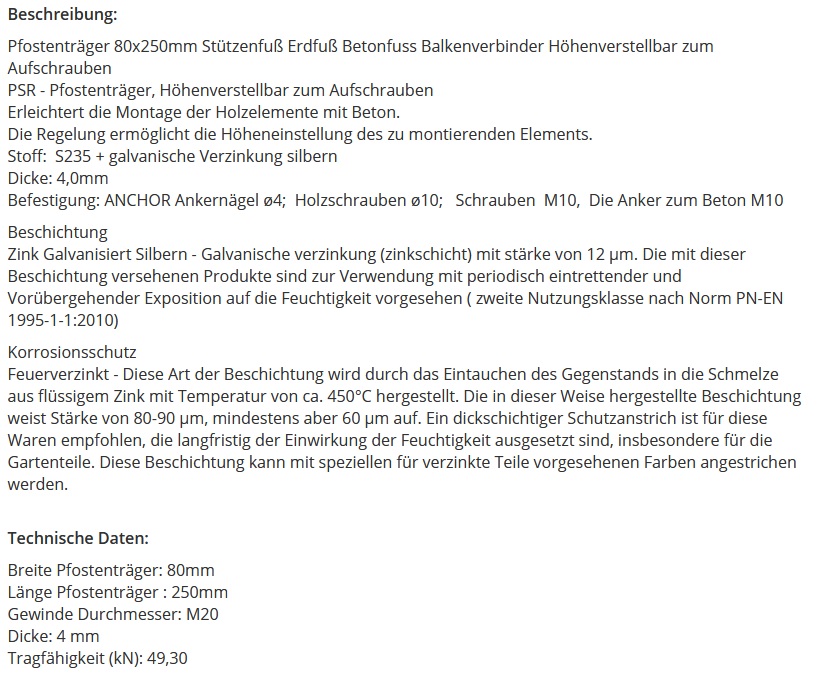 Abfangen / Lastverteilung 1,5 Tonnen mit Pfostenträger