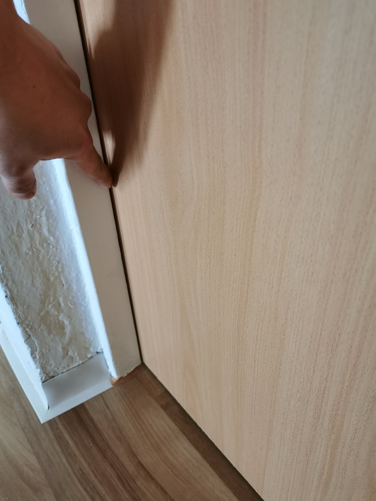 Diskutiere Abstand Zarge und Tür im Fenster/Türen Forum im Bereich Neubau; Ich bin in eine Wohnung im DDR Plattenbau eingezogen mit neuen Türen aber alten Stahlzargen. Bei einer Tür ist oben sehr viel Luft zwischen...