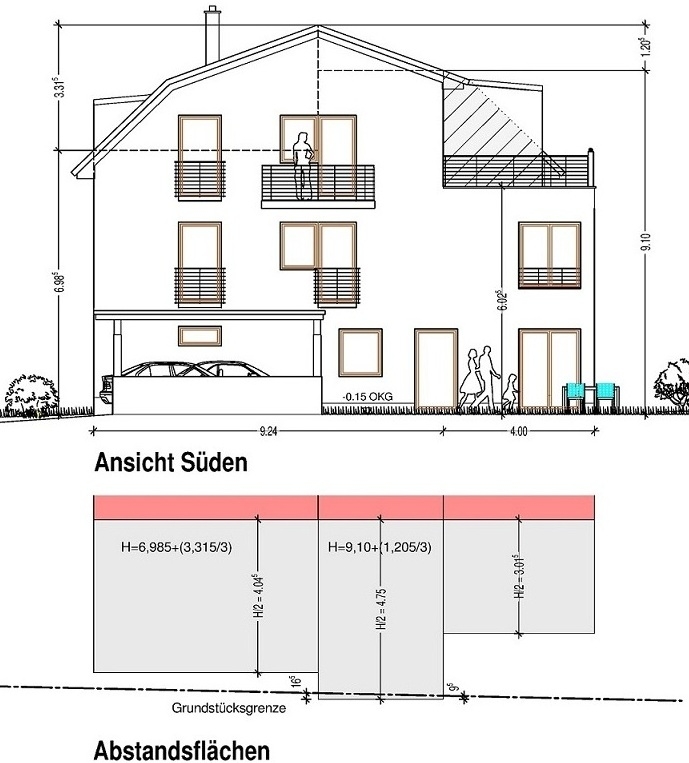 Abstandsflächen-Giebel mit Dachterrasse