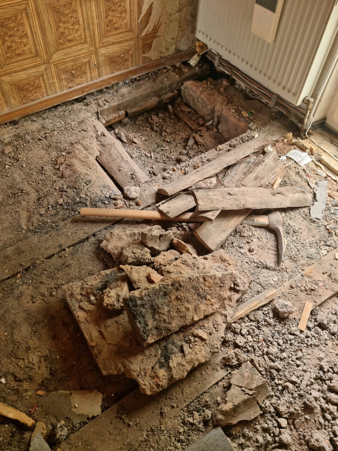 Betonplatte unter alten Dielenboden und Holzbalken.: Hallo, Ich habe ein altes Haus ohne Fundamentplatte nur Streifenfundamente ohne Keller. Die Böden sind aus Dielen darunter Balken...