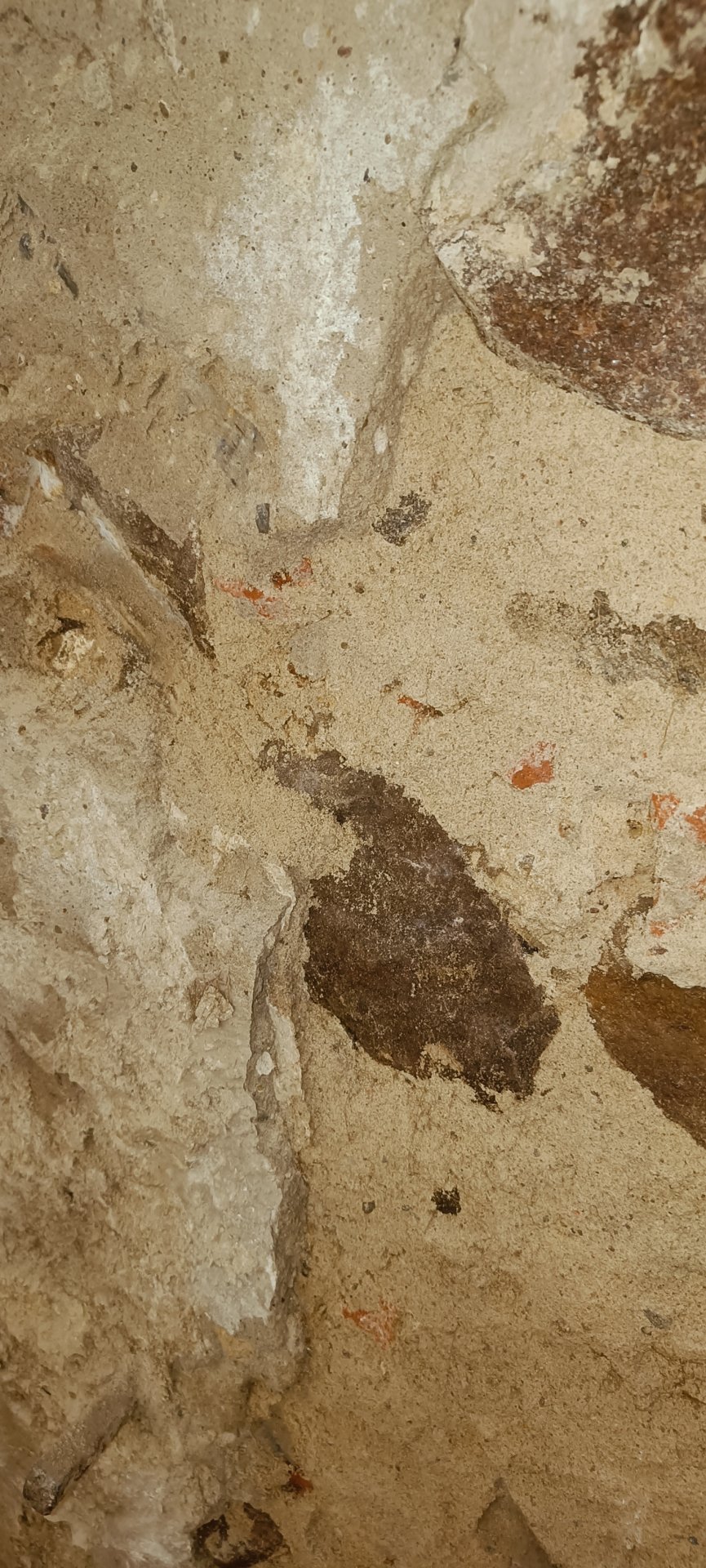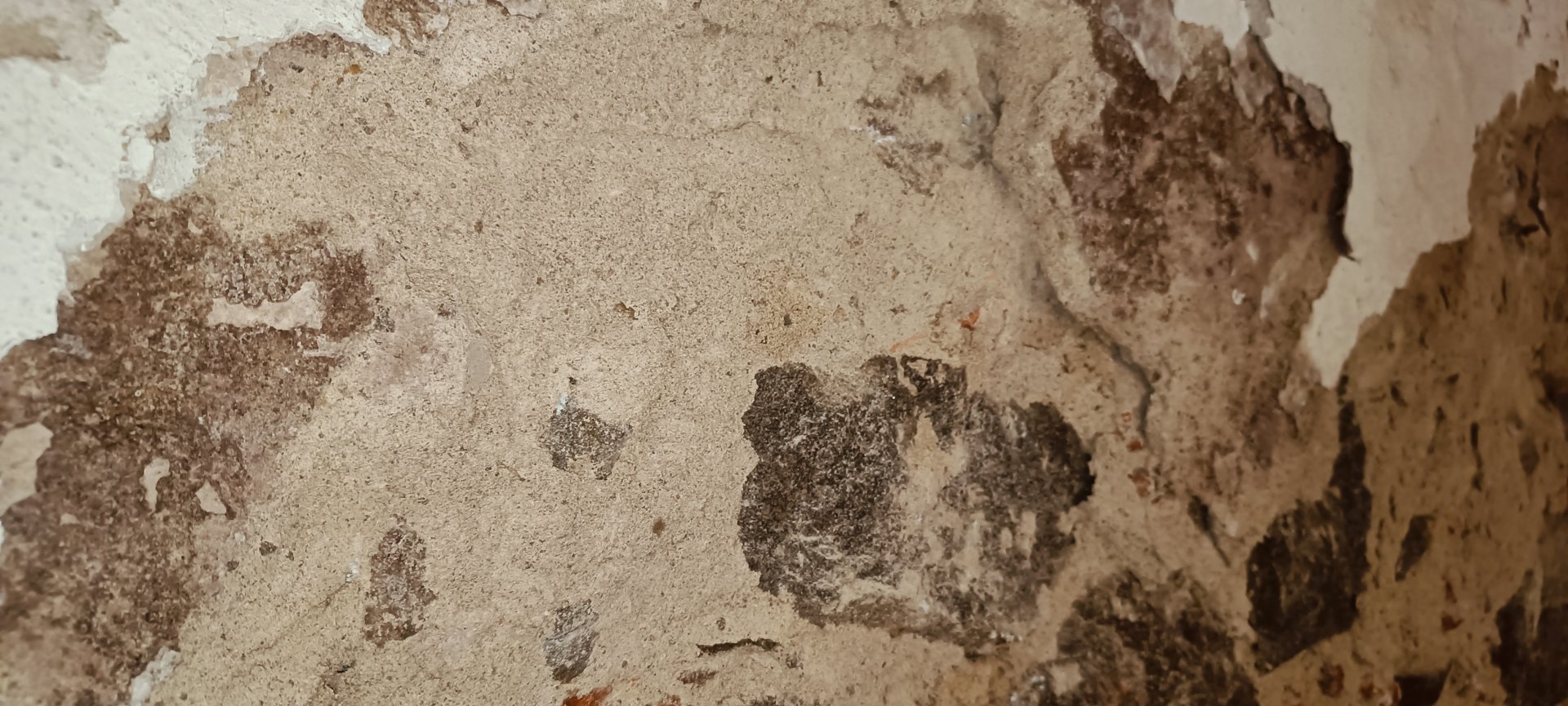 Weiterhin ist teilweise richtig fester Zementputz aufgetragen, der allem Anschein nach aber hohl ist, d.h. die Klopfprobe lässt das vermuten und nach teilw. abschlagen hat sich das auch bestätigt. Dahinter befand sich sich sogar schon Wurzelwerk, das sich offensichtlich von außen oder von unten den Weg gesucht hat.