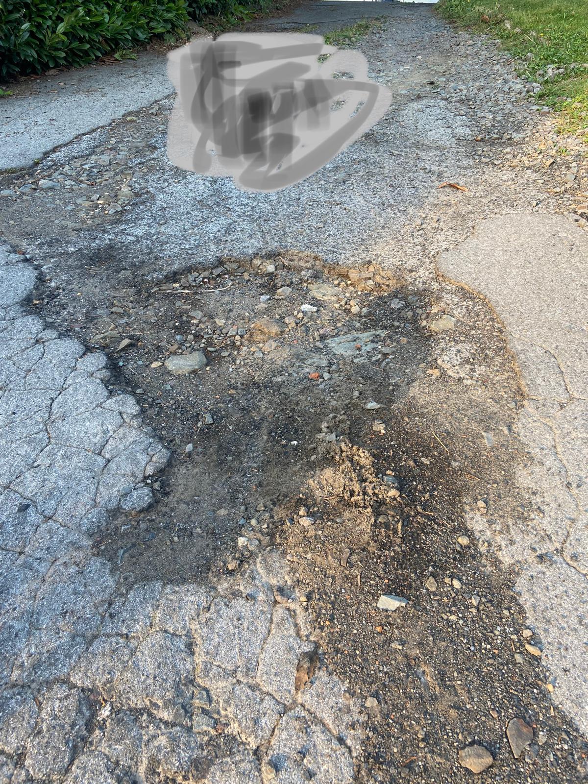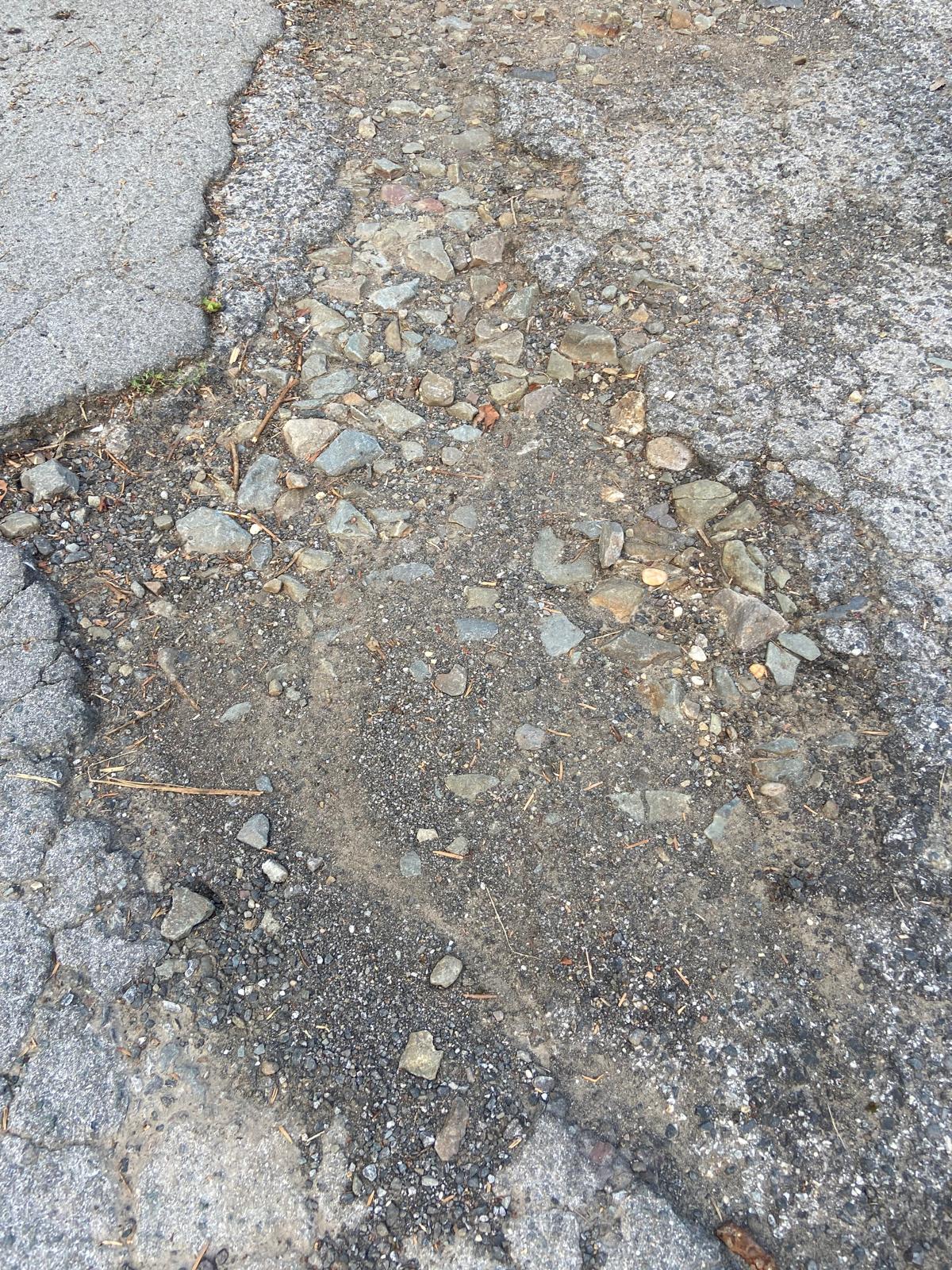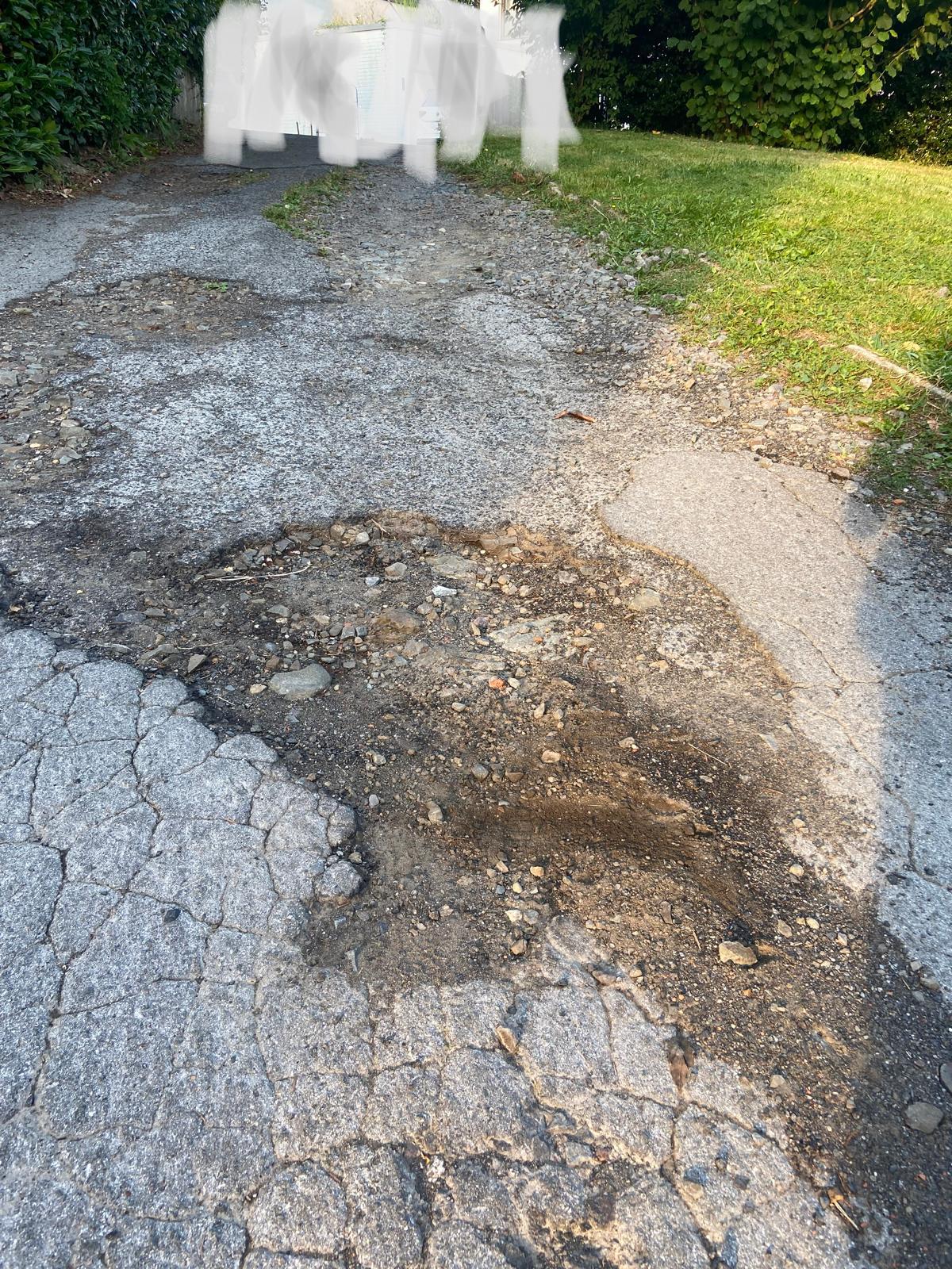 An Auffahrt teils Schlaglöcher ausbessern
