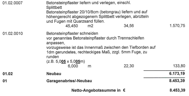 Diskutiere Angebot / Kosten für Garagenabriss und Neubau Carport Fundament im Baupreise Forum im Bereich Rund um den Bau; Hallo, wir wollen eine Garage abreissen lassen und einen neuen Carport bauen. Wir haben das folgende Angebot eines Tiefbauunternehmens für den...