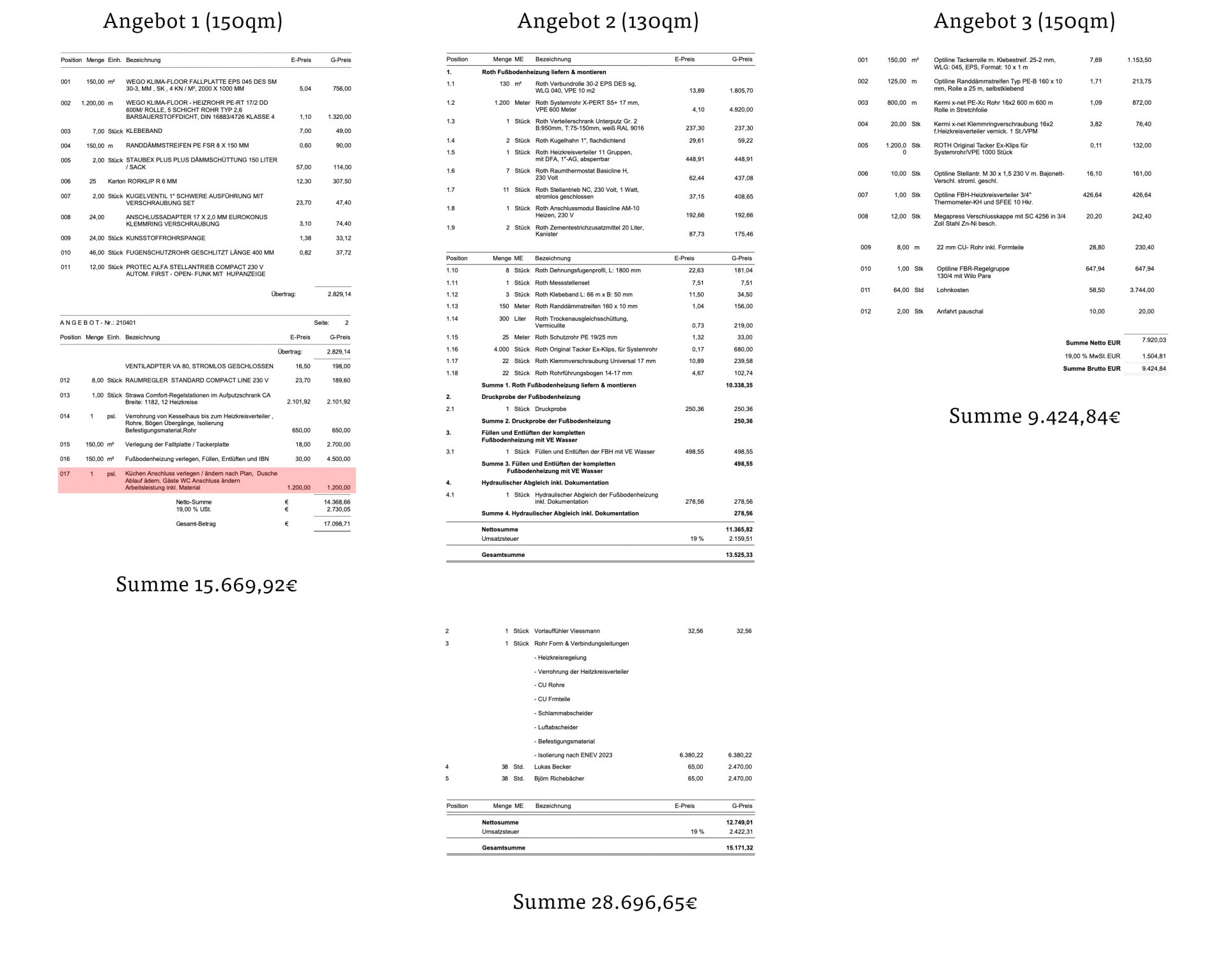 Diskutiere Angebotsvergleich FBH Wego/Strawa vs Roth vs Optiline/Kermi im Heizung 2 Forum im Bereich Haustechnik; Hi, ich hoffe ich bin in der richtigen Kategorie gelandet. Ich habe aktuell drei Angebote (im Anhang) für unsere neue Fußbodenheizung im Rahmen...