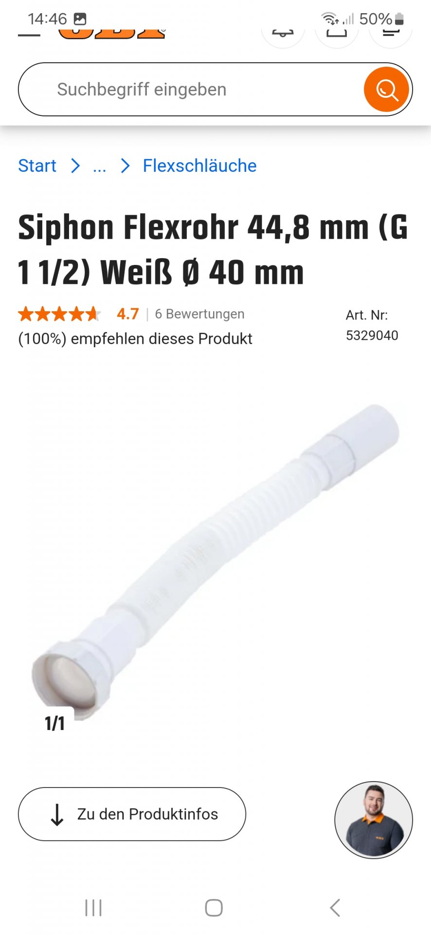 Ich benötige aber noch das flexible Rohr selbst. Ich hab bei Obi was entdeckt (Foto im Anhang). Das Schraubgewinde G 1 1/2 sollte auf den neuen Siphon passen. Das alte Rohr hatte 40mm Durchmesser und war mit einer Gummimuffe in das Abwasserrohr im Boden gesteckt. Meint ihr das könnte gehen? Gibt es eine andere Fixierung als die Gummimuffe. Gerne Vorschläge, Anregungen ... Wir haben das Haus neu gekauft und sind Handwerkerlaien