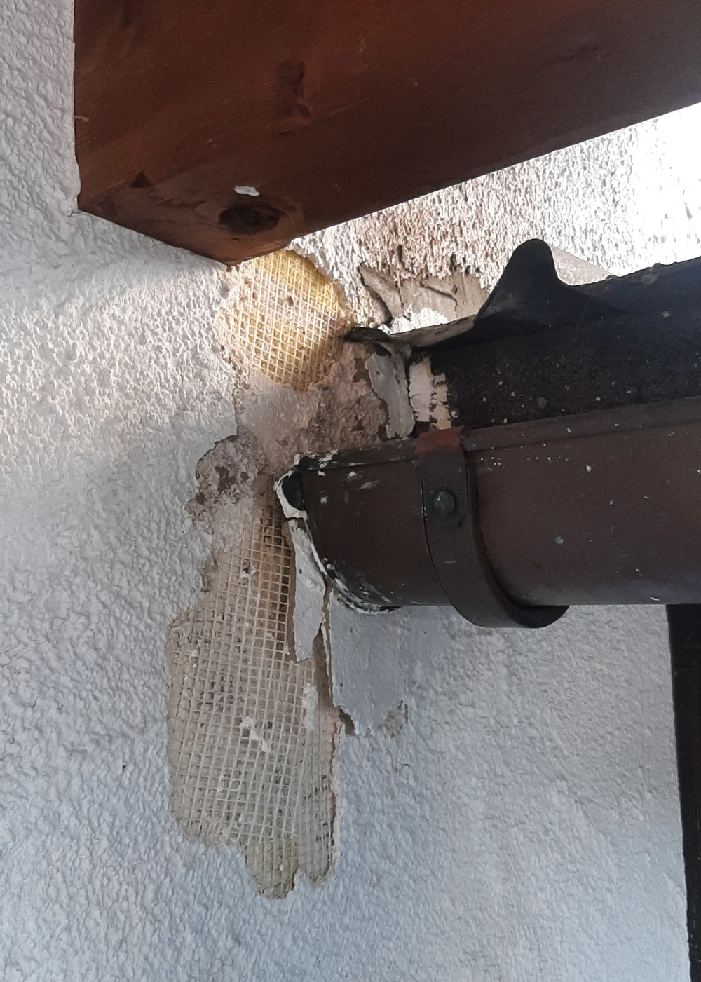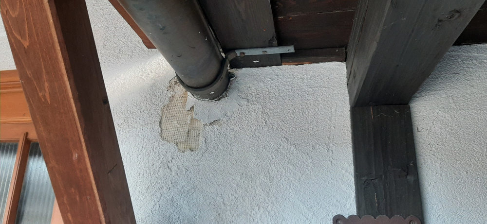 vor etwa 10 Jahren wurde die Nordseite des Hauses mit einem WDVS versehen. Die bestehende Überdachung wurde wohl etwas unglücklich daran angeschlossen.