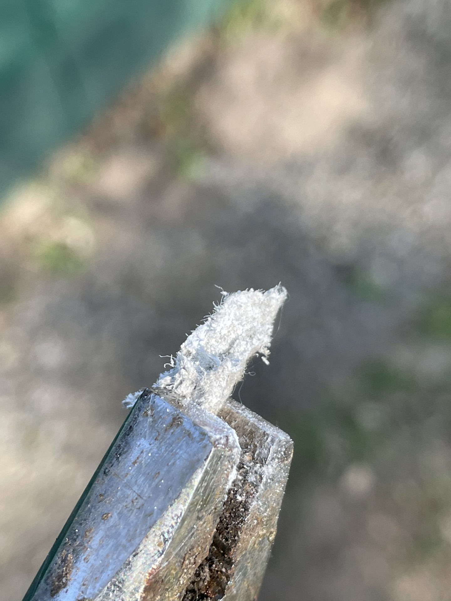 Das war auch meine Vermutung, schön es aus anderem Munde zu hören.Danke. Stutzig machten mich nur die ganzen Fasern, es ist halt die alte Asbestangst in mir (hab als Kind mit Eternitplatten Hütten gebaut…). Stutzig hatten mich etwas die Fasern gemacht, aber geradw nochmal ein Stück flambiert und übrig blieb ein grauer Stein, der sich total pulverisierte….