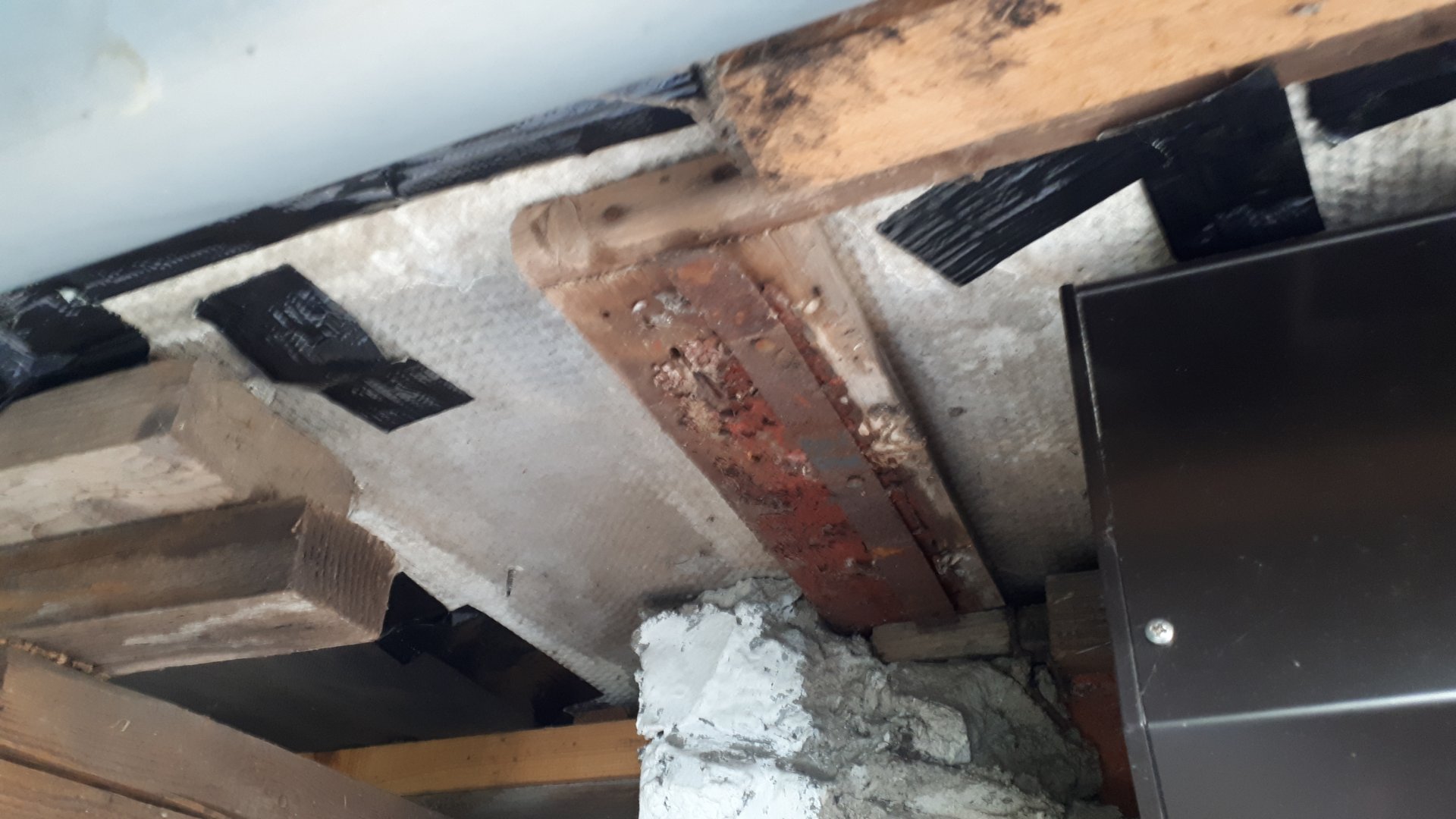 Ich habe eine alte Garage beim Kauf eines älteren Hauses übernommen und schaffe es dieses Jahr nicht mehr, die Garage zu sanieren, da ich mit dem Haus beschäftigt bin. Die Garage ist mit Dachpappe gedeckt, darunter befinden sich absesthaltige Platten, welche auf Holzbalken montiert sind. Die Decke innen ist mit Pressspanplatten verkleidet. Außen über dem Rolltor liegen die asbesthaltigen Platten frei und sind teilweise schon verwittert und beschädigt (siehe Fotos). Da ich die Platten erst nächstes Jahr entfernen kann und die Garage bis dahin als Stauraum benötige, möchte ich die freiliegenden Platten zur Sicherheit provisorisch verkleiden. Ich denke dabei an ein Vlies oder eine Folie.