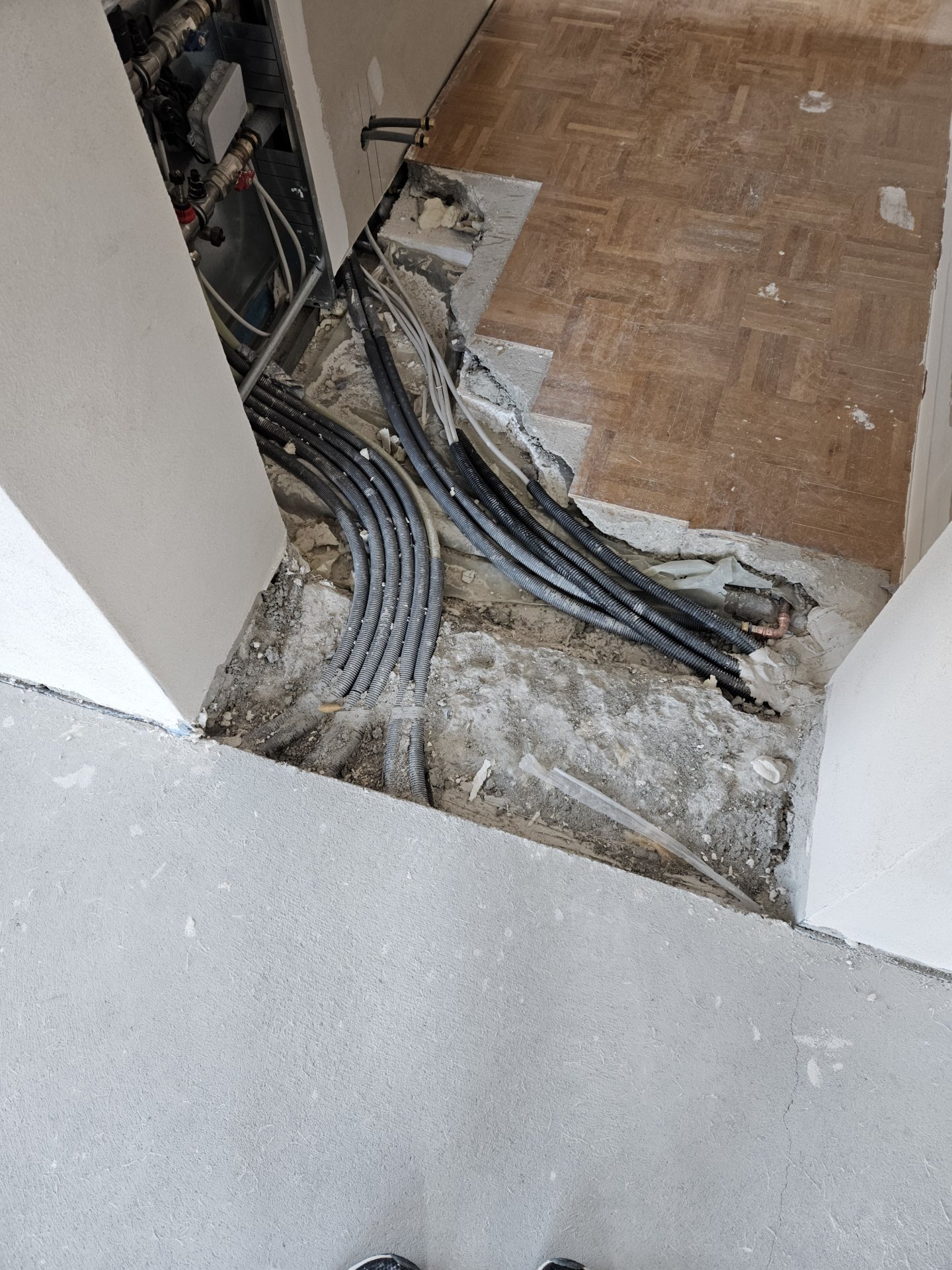 Neubau - Estrich aufgestemmt: Guten Abend, Wir haben heute im Keller überrascht feststellen müssen, dass der Estrich im Hausanschlussraum großflächig aufgebrochen wurde.... -