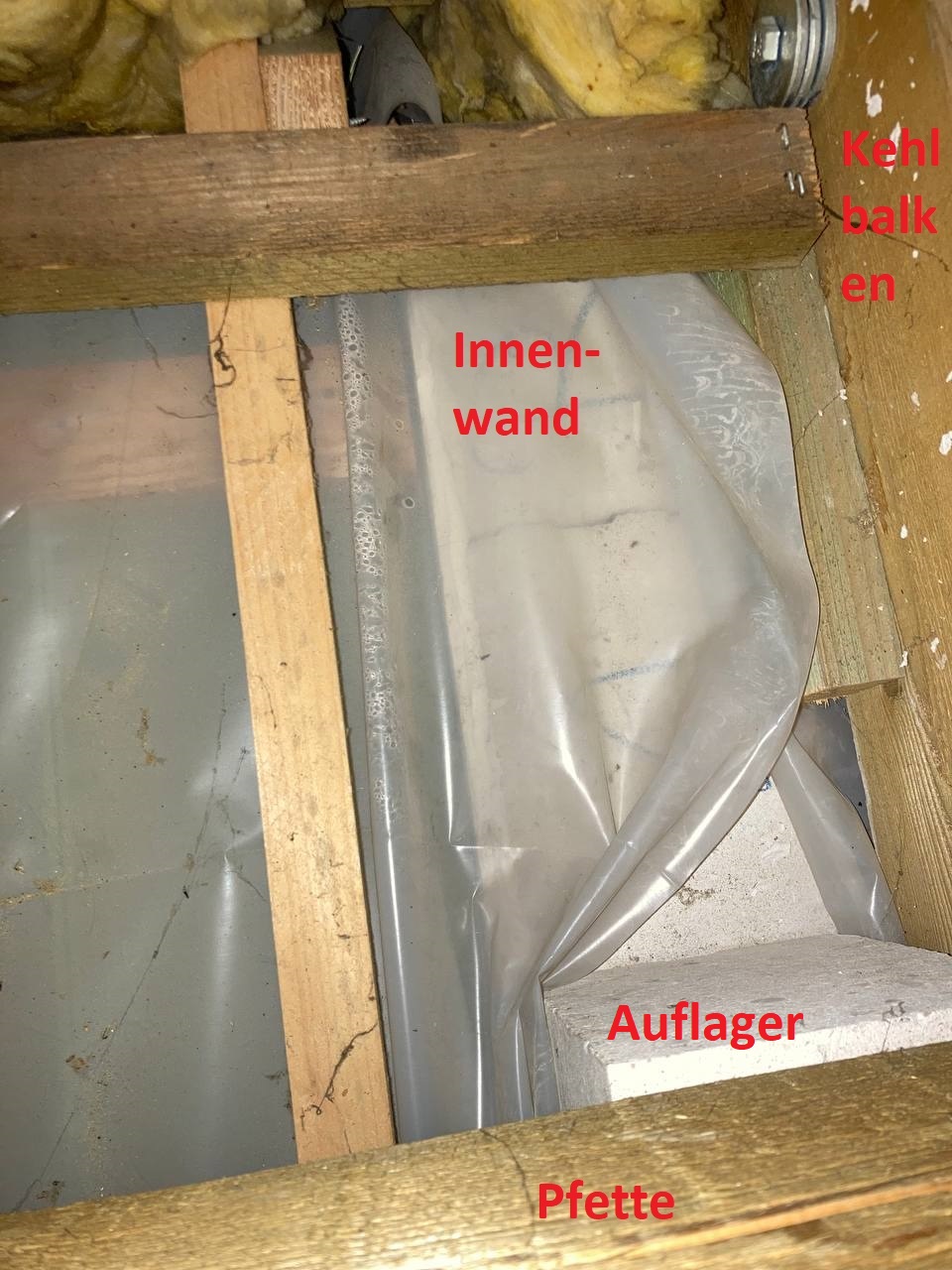 Auflager Mittelpfette - Durchdringung luftdichter Ebene ausbessern: Hallo zusammen, Wir haben vor anderthalb Jahren ein EFH BJ 2001 gekauft. Es hat einen ungedammten Spitzboden, die oberste Geschossdecke ist eine... -