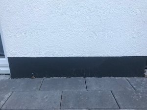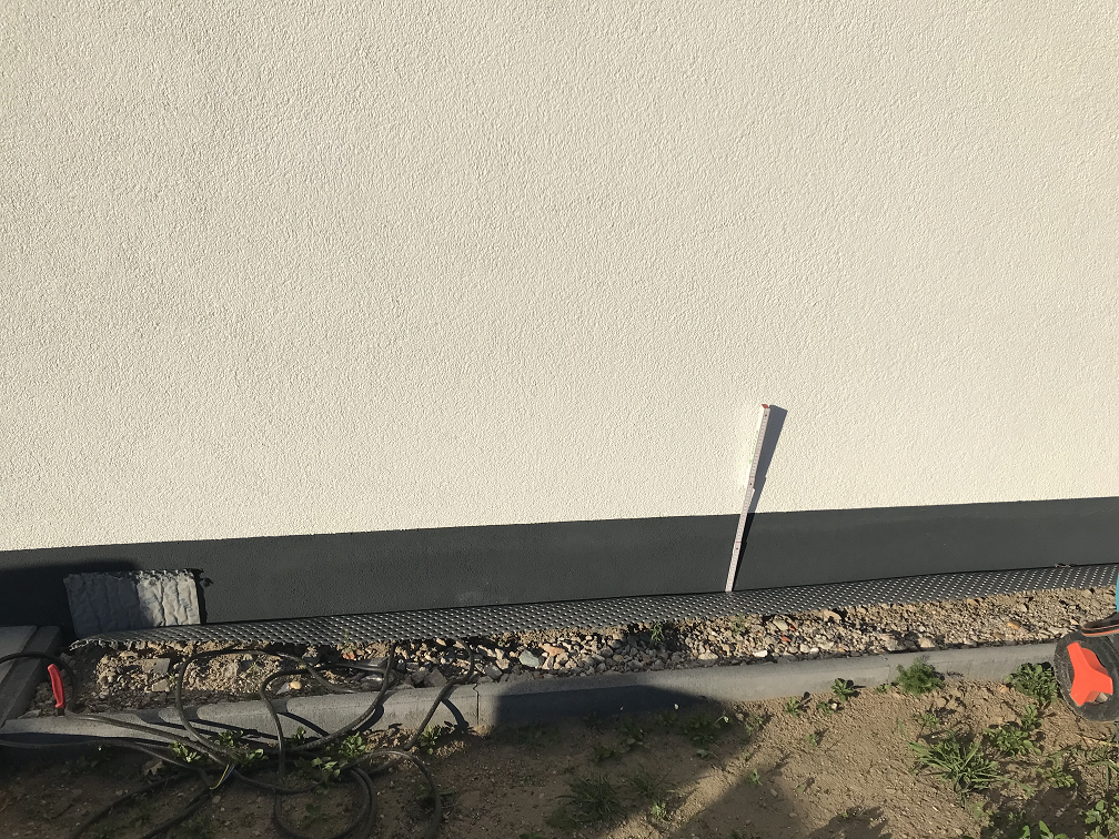 Diskutiere Ausblühungen oder Verfärbung Sockel? im Außenwände / Fassaden Forum im Bereich Neubau; Mein Sockel (anthrazit, RAL 7016) hat im oberen Bereich einen helleren Streifen, sowie - in Bild 1 rechts neben Zollstock, unten - einen hellen...