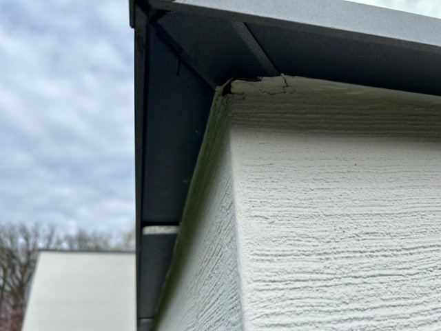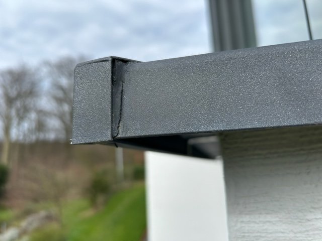 Wollte ja ein Update geben: wir hatten einen Ortstermin mit dem Architekten. Auch sein Verdacht geht zur Fensterbank bzw. dem Eckverbinder. Hier ein paar Fotos, wie das Teil aktuell so wirkt.