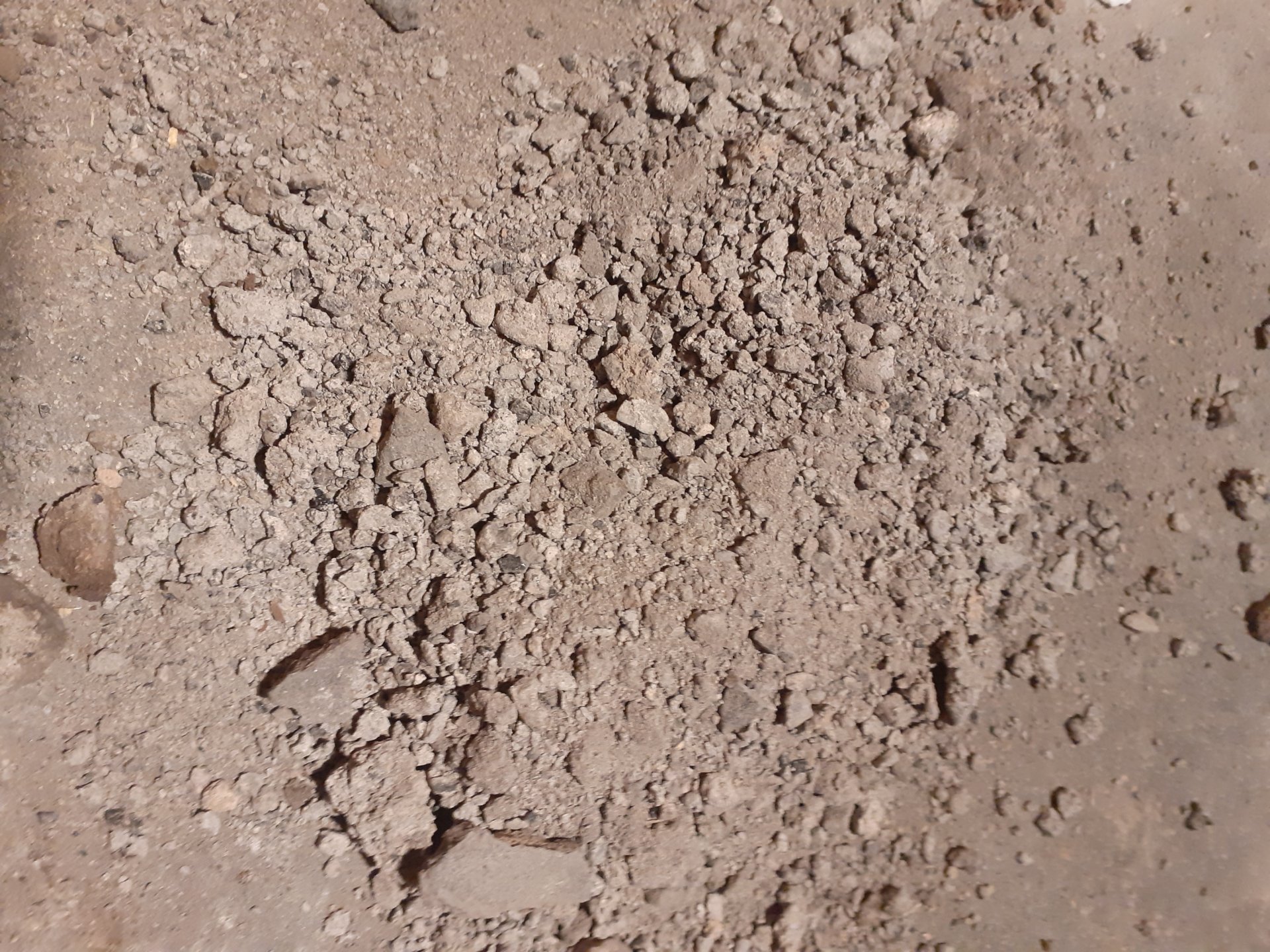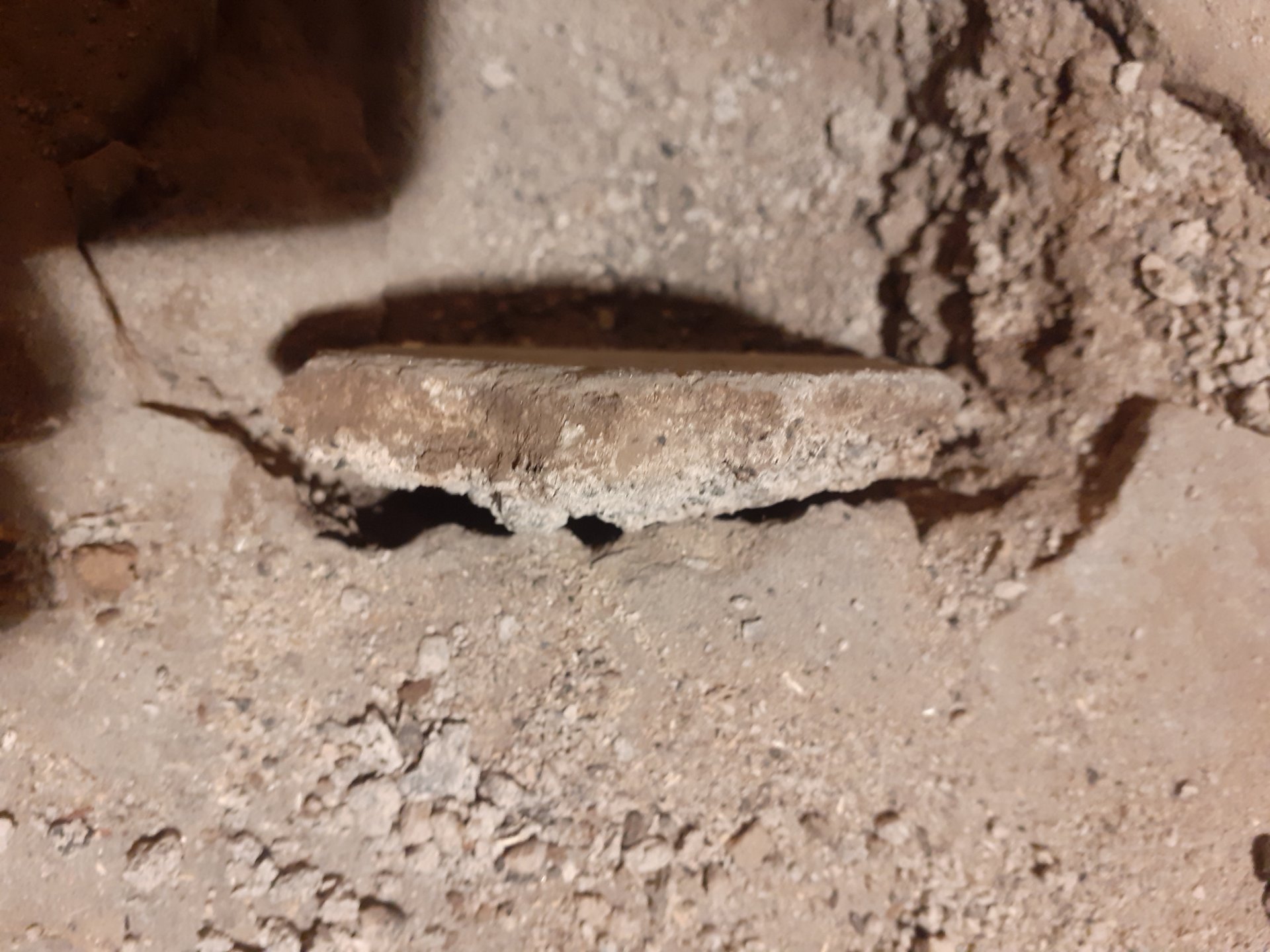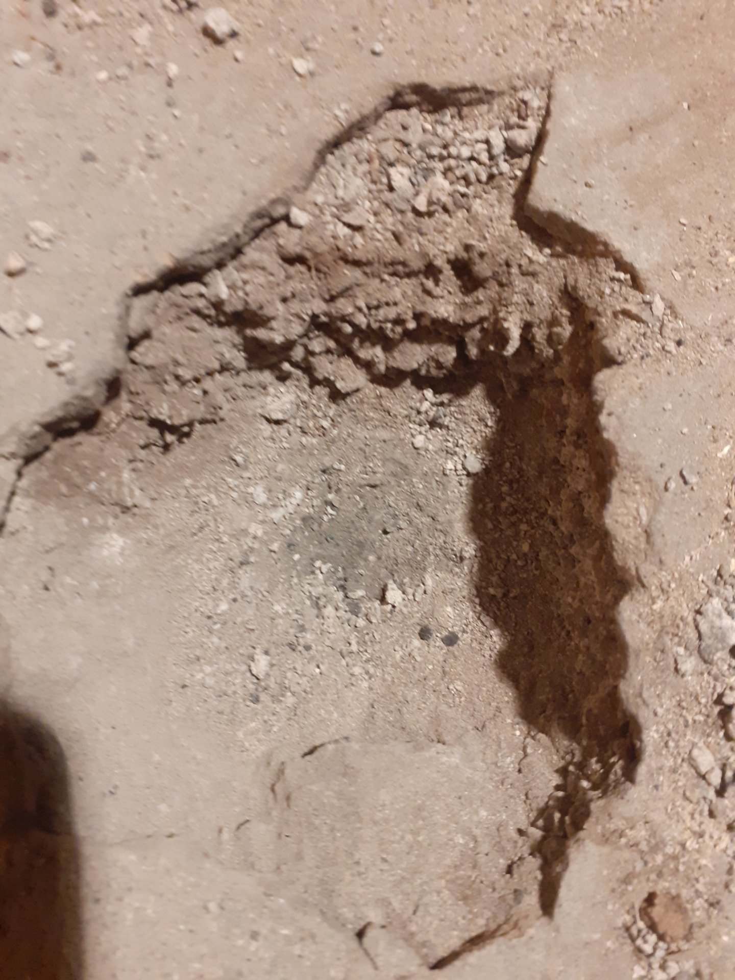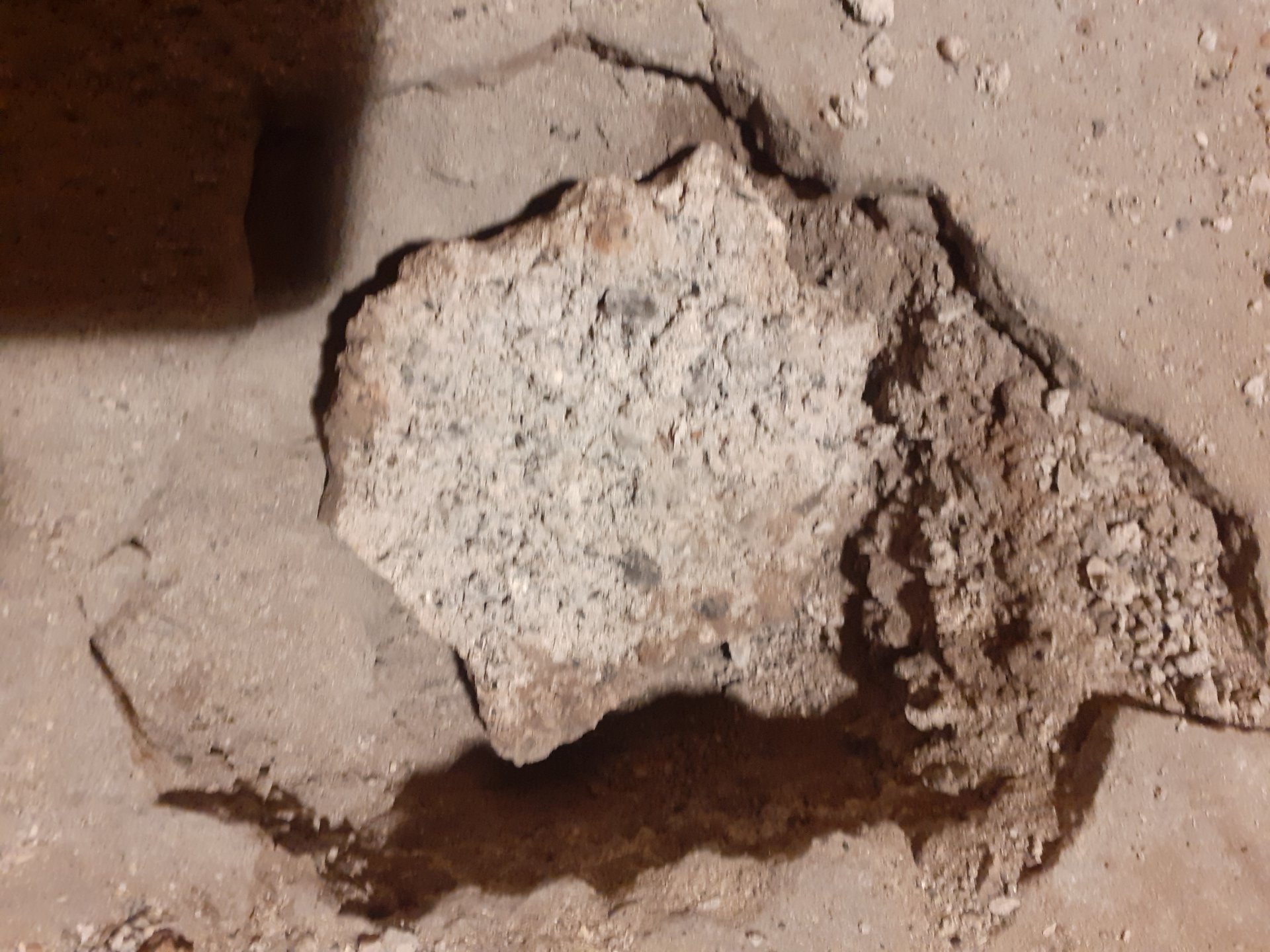 3)dann kommt so schwarzer Stein, der ziemlich fest ist, aber nicht so wie ich die gebrannten Steine kenne. die Wände bei mir bestehen ebenfalls aus solchen schwarzen Steinen, nur dass ich in diese mit einem Schraubendreher ganz leicht Löcher reinmachen kann. Das geht beim Boden nicht aber mit Hammer und Meisel kriegt man halt ebenfalls soche schwarzen Körner ab, die aussehen wie schwarze Prasche.