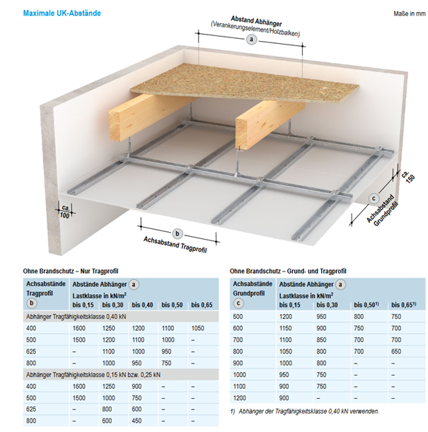 Auslegung Abstand CD/UD-Profile/Direktabhänger