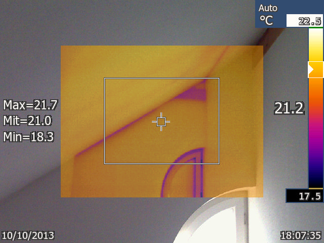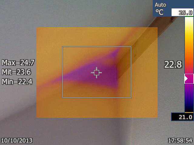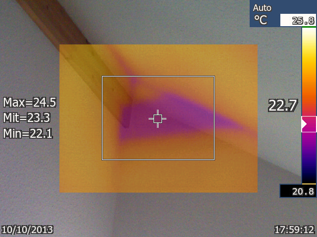 Diskutiere Aussagefähigkeit von Thermografiebildern ? im Spezialthema: Wärmebrücken Forum im Bereich Bauphysik; Ich habe heute bei meiner Bekannten Bilder gemacht. Die Rauhfasertapete ist an den kalten Stellen dunkel (feucht ?) Kann anhand diesen Bildern...
