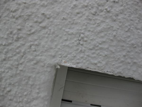 Wasserschaden Außenputz Garage: Hallo, die Regenrinne meiner Garage war vollkommen verstopft und das Regenwasser lief monatelang unbemerkt wie ein Wasserfall über den Außenputz.... -