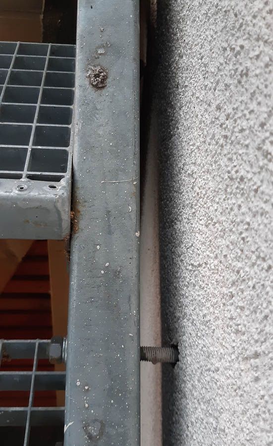 Diskutiere Außentreppe wackelt und schwingt im Baumurks in Wort und Bild Forum im Bereich Rund um den Bau; Moin! Unsere Wohnung auf einem Flachdach ist nur über eine Außentreppe zu erreichen. Die Treppe hat 25 Stufen ohne Podest, sitzt unten auf einem...