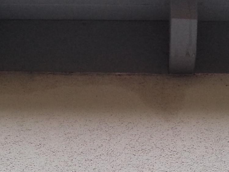 Feuchter Fleck an überdachter Außenwand / Fenster. Ursachen?