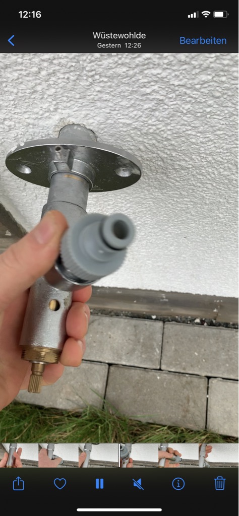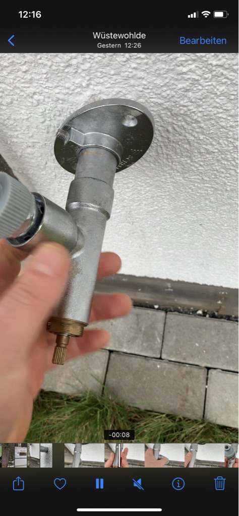 Diskutiere Außenwasserhahn undicht im Mauerwerk im Sanitär Forum im Bereich Haustechnik; Guten Tag alle zusammen, ich hoffe mir kann einer ein paar Tipps geben was da mit dem Wasserhahn los ist. Wasserhanh ist von Schell, 2 Jahre...