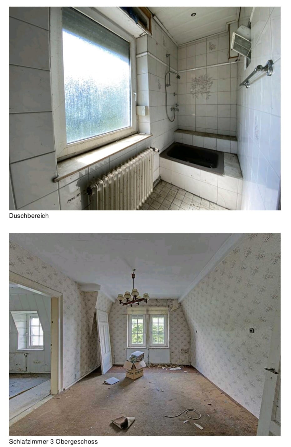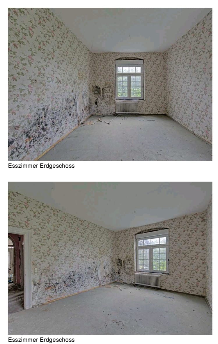 Nach diesen Bildern kann man keinen desolaten Zustand erkennen, eine teilweise heruntergerissene und verdreckte Tapete aus den 60ern ist kein Zustand eines Bauwerks.