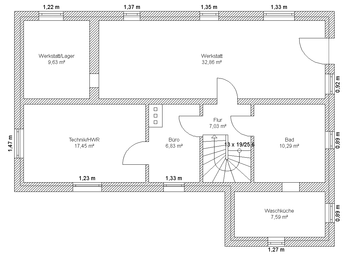 Ich habe den Grundriss des Gebäudes mit Ashampoo 3D CAD Architecture 11 gezeichnet, welches ich aber für die Badplanung als ungeeignet empfinde.