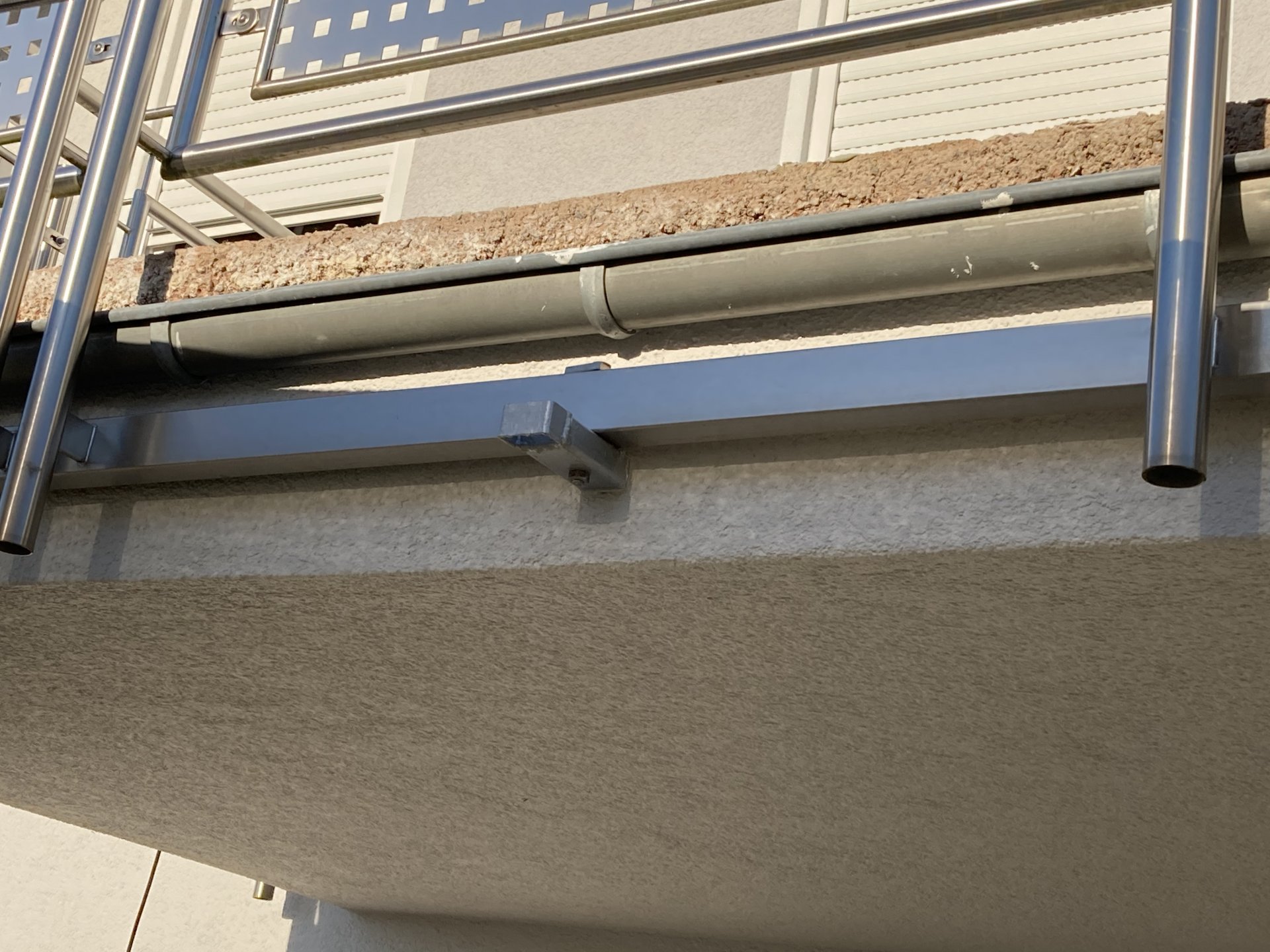 Stelzlager für Balkonbelag gesucht / Kombination mit Geländer: Hallo zusammen, wir haben unseren kleinen Balkon - gleichzeitig Vordach der Haustür - abdichten lassen. Zugleich ist eine Kastenrinne montiert...