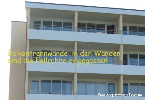 Diskutiere Balkonentwässerung über innenliegende Fallrohre im Außenwände / Fassaden Forum im Bereich Neubau; Hallo Experten, nachfolgend schidere ich möglichst kurz mein Problem: Situation: Mehrfamilienwohnhaus Baujahr 1969. Balkonfassade zu beiden...