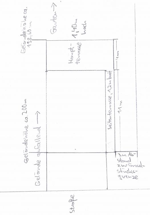Bau einer maximal 1,40 m hohen Terrasse auf abfallendem Gelände, Abstandflächenv. NRW - Ähnliche Themen