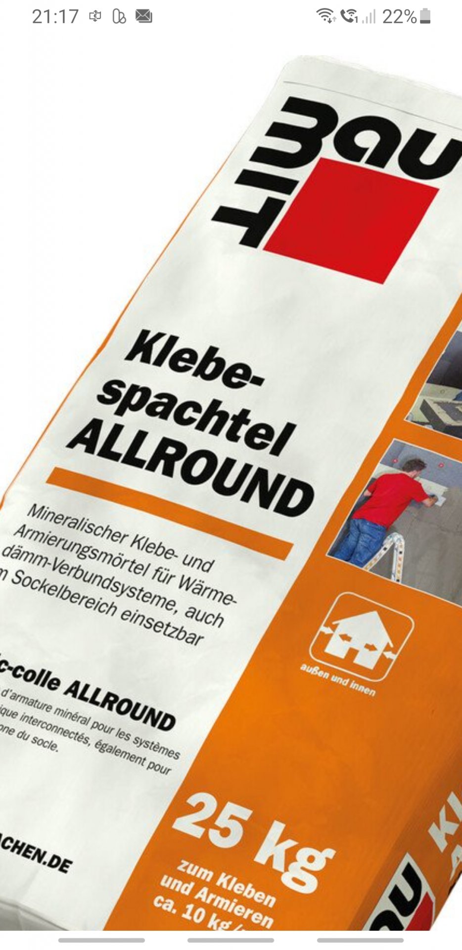 Auf der Verpackung steht Klebe- und Armierungsmörtel für WDVS. Für mich also was für den Außenbereich.