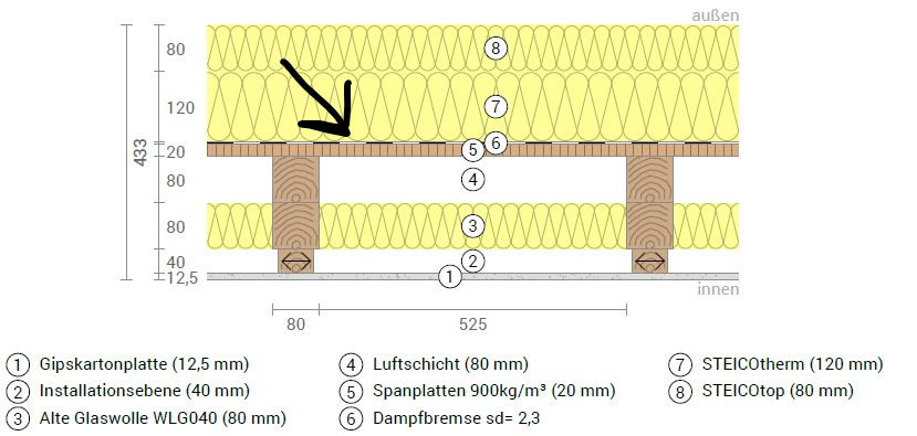 Diskutiere Begehbare Dämmung auf Dachboden - Platz für Kabel schaffen im Dach Forum im Bereich Neubau; Guten Abend, wir sanieren derzeit ein Haus von 1975 im Westerwald. Der Dachaufbau ist von der Vorbesitzerin wie folgt überlassen worden:...