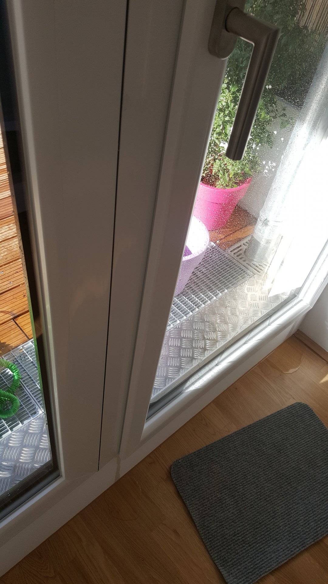 Das Problem, es rinnt bei starken Regen immer wieder rein (bei geschlossenen Fenstern natürlich). Das Wasser tritt dann seitlich bei der Tür aus. Nach monatelangen ansuchen kam einmal ein Herr vorbei, welcher meinte ich solle die Fenster nicht mit dem Gartenschlauch abspritzen, da wäre es logisch das Wasser eintritt und das lässt sich nicht vermeiden.