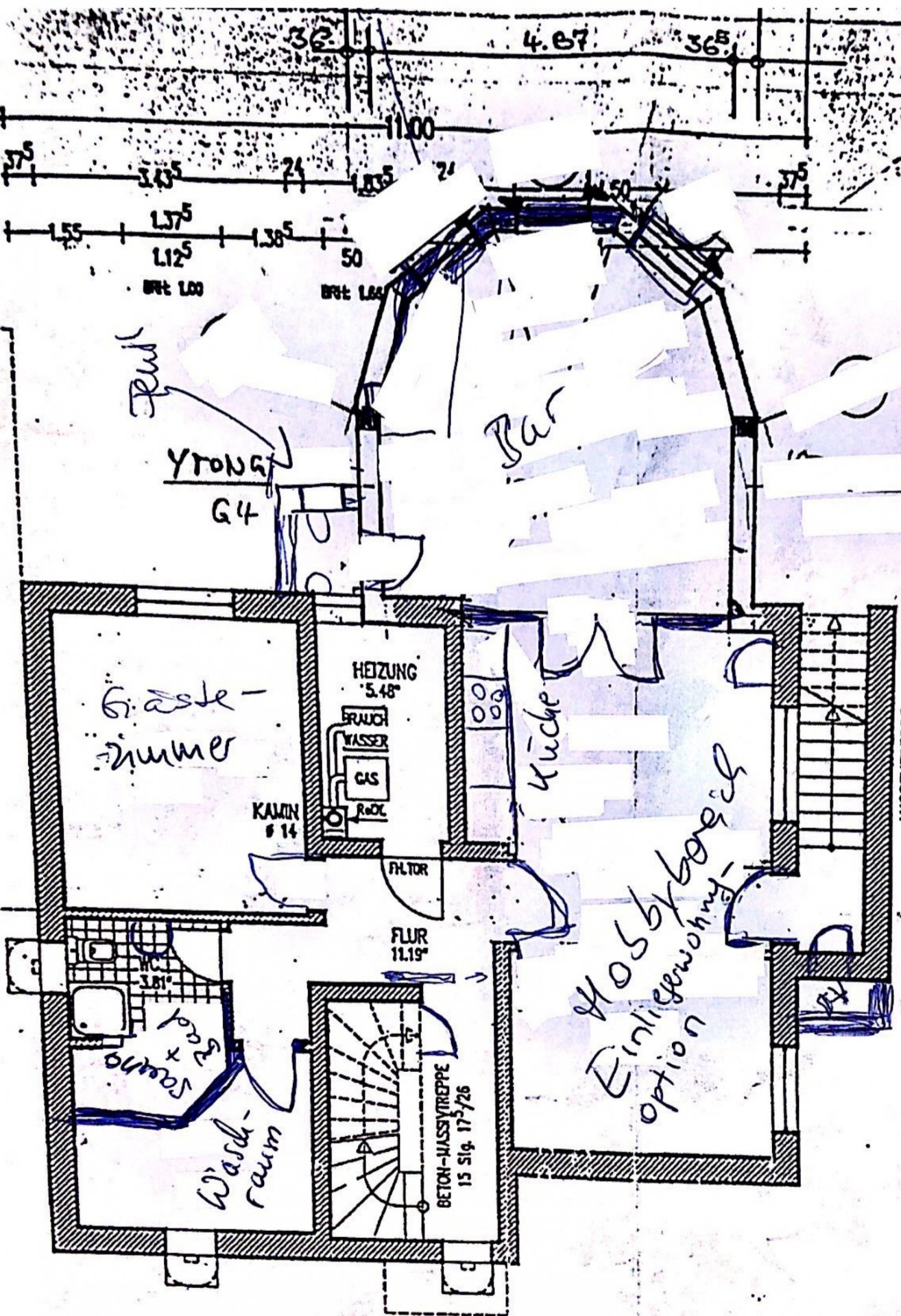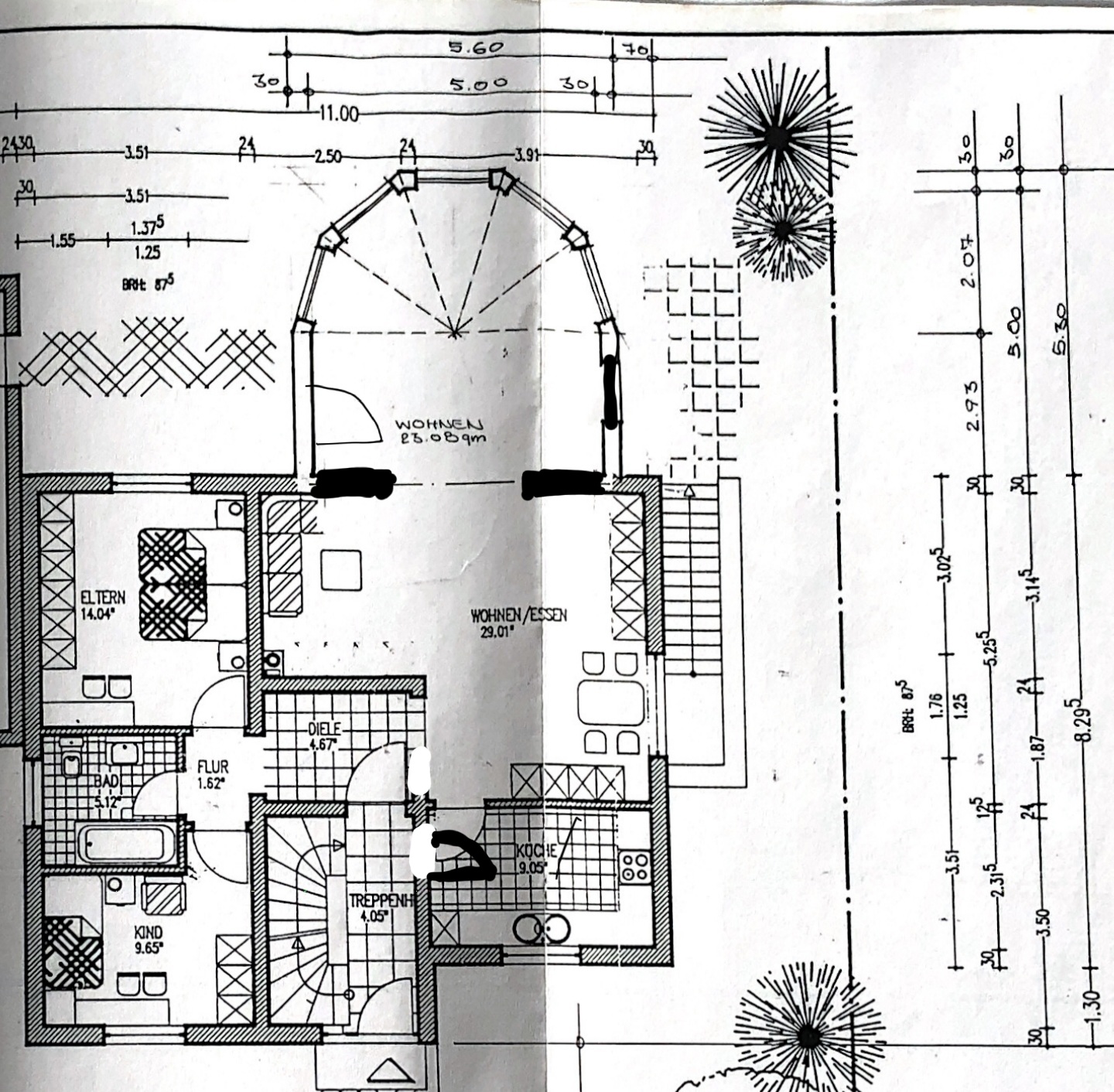 Ich gehe jetzt mal davon aus, dass die Einzeichnungen im alten Grundriss den Ist-Zustand darstellen.