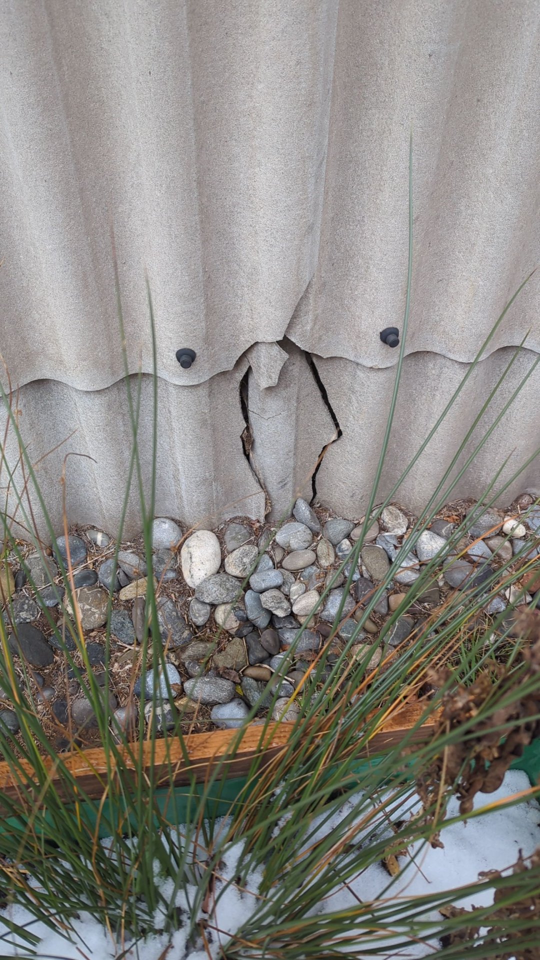 In die Eternitplatten wurden "Fenster" geschnitten und vereinzelt finden sich Risse. (siehe Fotos).