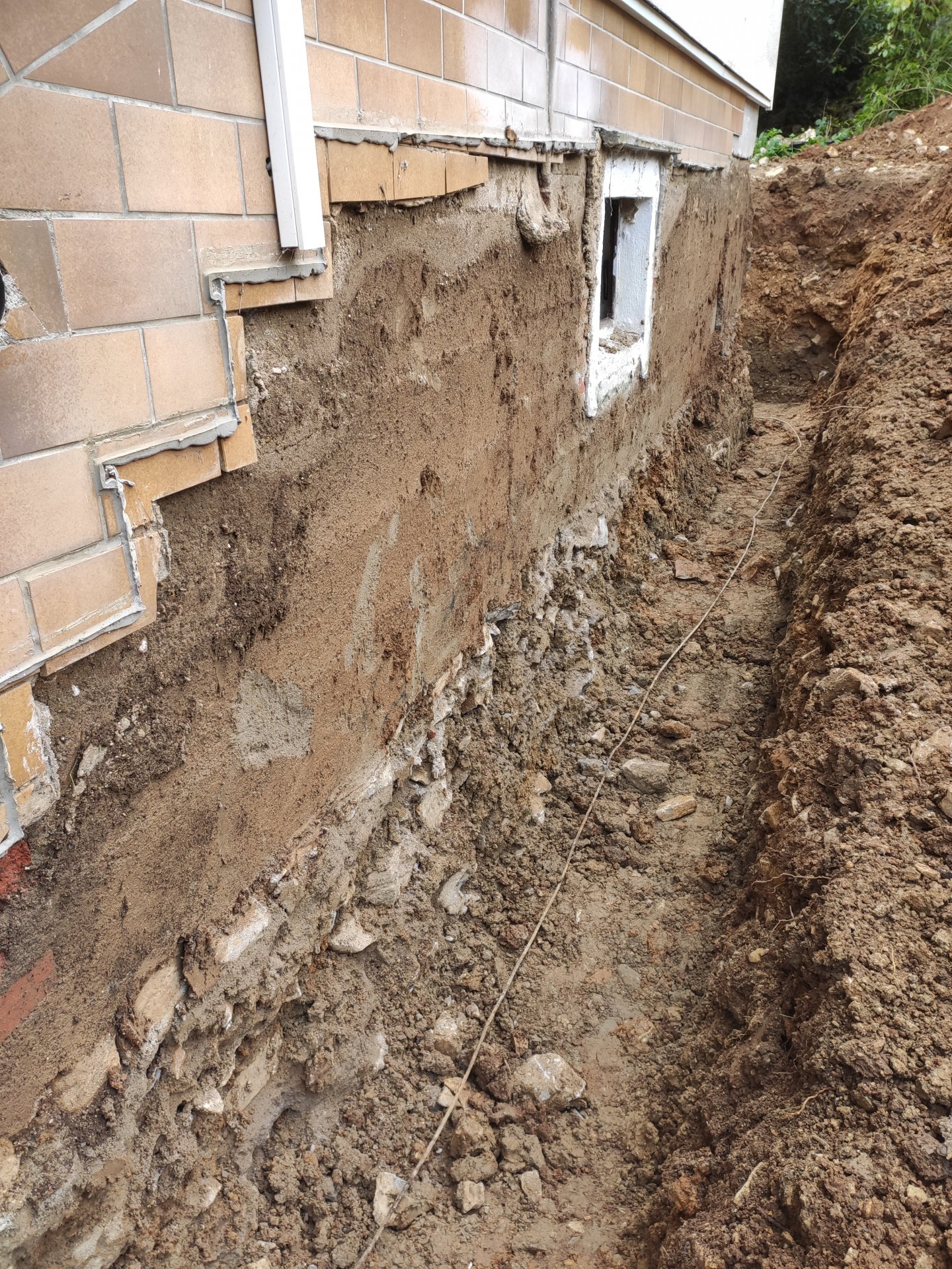 Wenn man alles freigelegt hat, kommt man normalerweise nicht auf die Idee, sich die Perimeterdämmung zu sparen. Direkt vor die KMB, dann Noppenbahn davor und fertig. Wie im Neubau heutzutage.....