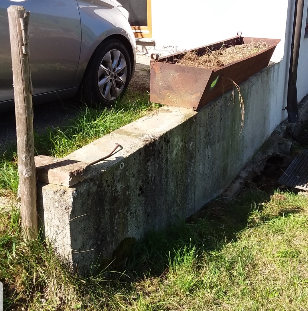 Wir haben seit Herbst 2018 laufende Arbeiten in der Außenanlage und sind im Moment in den Endmaßnahmen. Zu einer letzten Endmaßnahme, welche ich im Moment für mich noch nicht gelöst habe, zählt noch ein "Allwetterschutz" für eine Betonmauer in der Garagenabfahrt .
