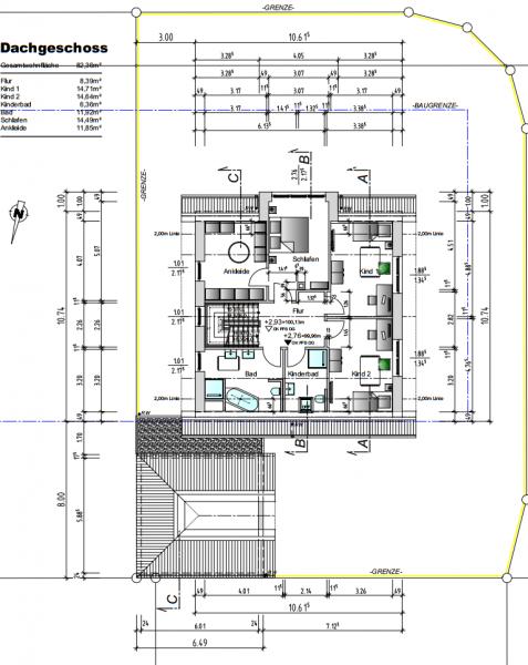 Also Treppenhaus, Bad, Anschlüsse usw. sind bekannt, danach kann man die Räume ausrichten.