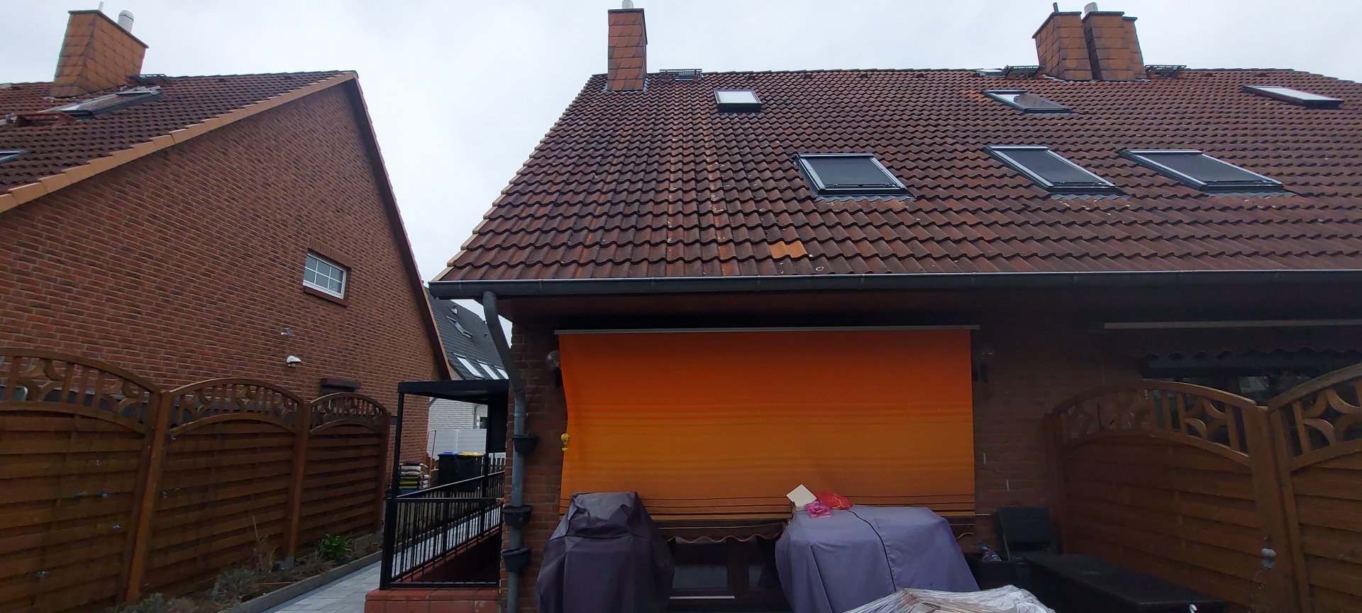 Ich habe ein Eckreihenhaus und gegebüber (rechts) idt das andere Haus. Die fotografierte Wand und das dach sind nach Süden ausgerichtet.