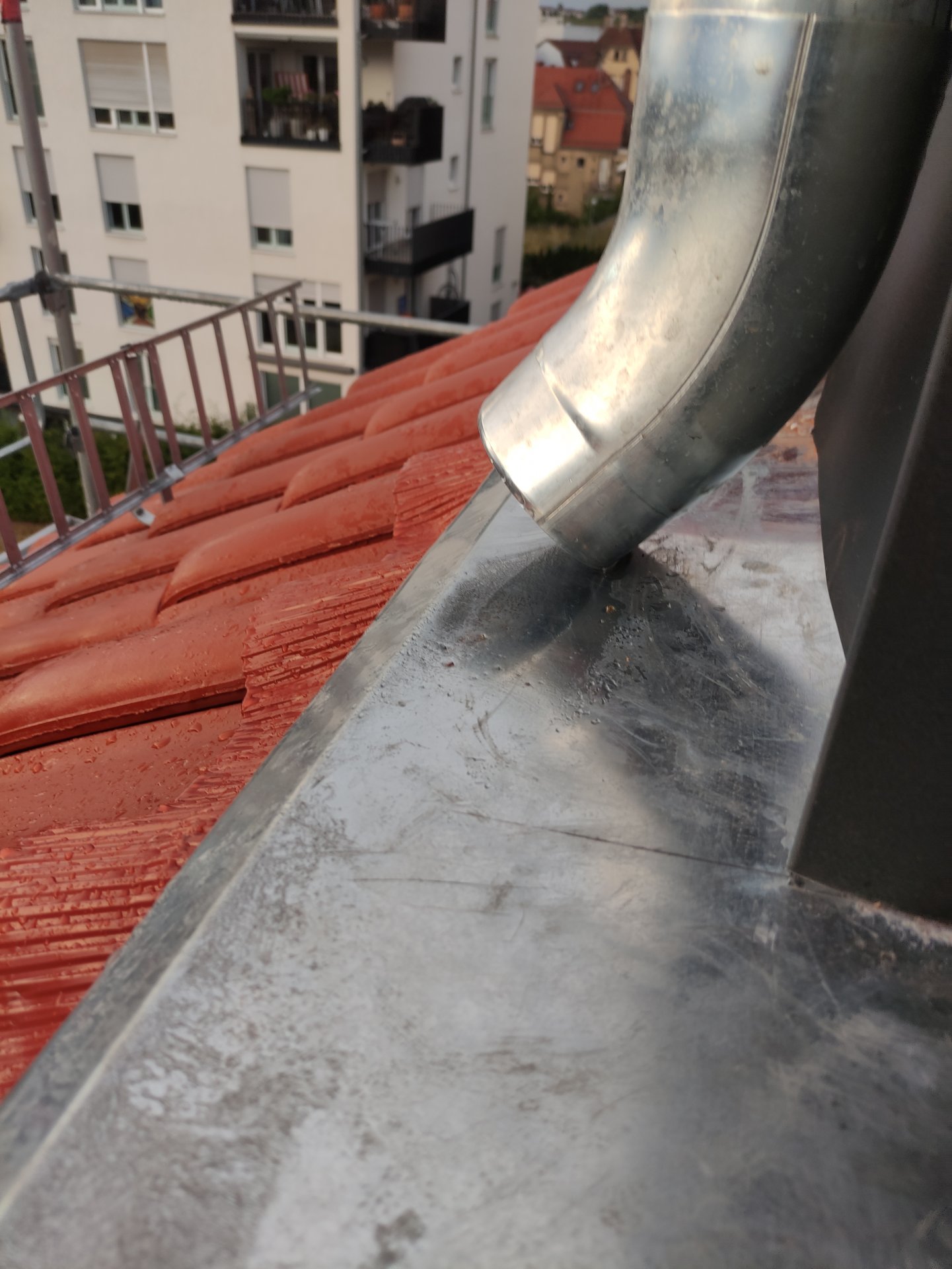 Blecharbeiten bei Dachgaubensanierung: Bin heute ganz erschrocken was die Dachdecker da bei der Sanierung des Daches und der Dachgauben abgeliefert haben: - Regenrinne leitet Wasser... -