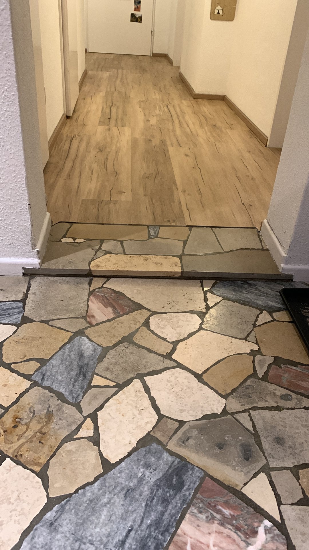 Diskutiere Boden schräg gießen / spachteln im Sanierung konkret Forum im Bereich Altbau; Hallo, Ich suche eine Lösung für meinen Eingangsbereich. Unser Haus hat zu beiden Fluren eine 3,5 cm Stufe, die wir gerne entfernen möchten. Die...