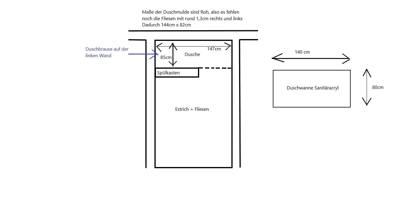 Diskutiere Bodenebene Duschwanne in eine ummauerte Mulde einsetzen im Estrich und Bodenbeläge Forum im Bereich Neubau; Hallo zusammen, Ich möchte eine fertige Acryl Duschwanne Bodeneben in eine "ummauerte" Mulde einlassen. Ich habe das ganze im Anhang mal grob...